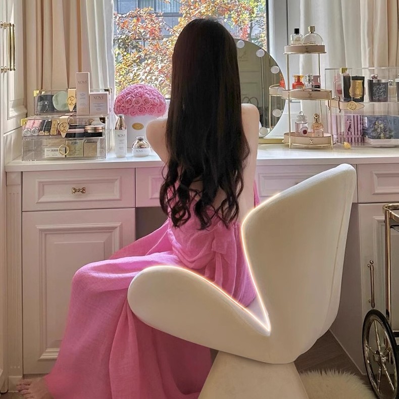 旋转梳妆凳天鹅椅沙发椅奶油风休闲椅美甲化妆衣帽间梳妆椅子