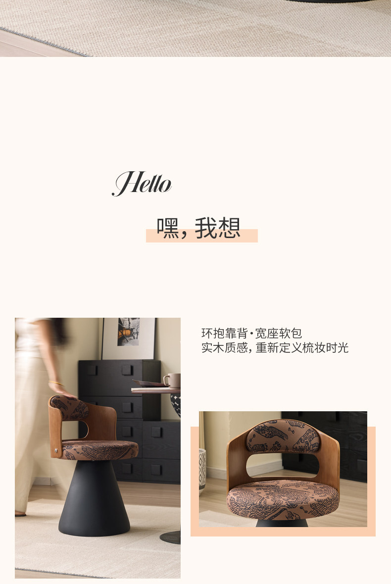 轻奢简约女生化妆凳家用高级感意式极简设计师可旋转布艺酒店餐椅