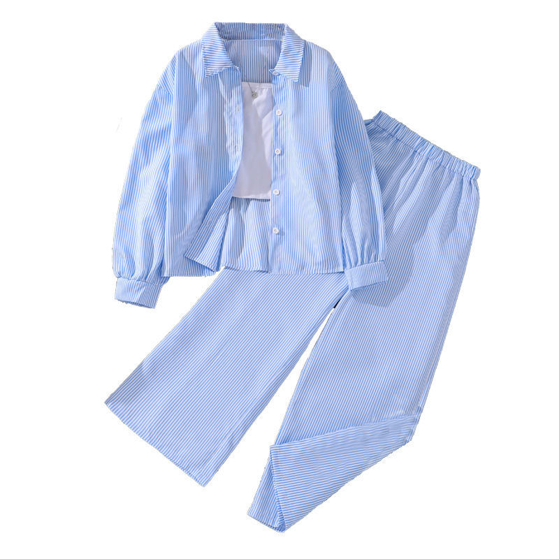 男女童套装跨境外贸爆款童装2025春秋季儿童长袖衬衫阔腿裤两件套