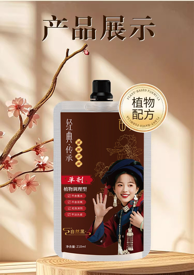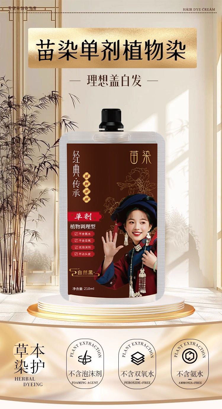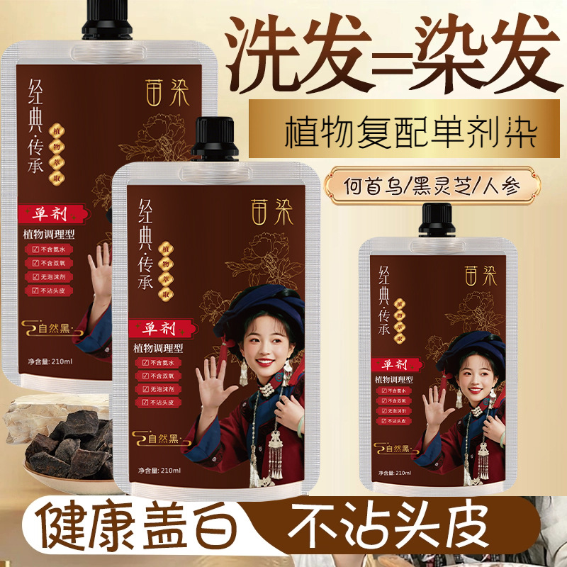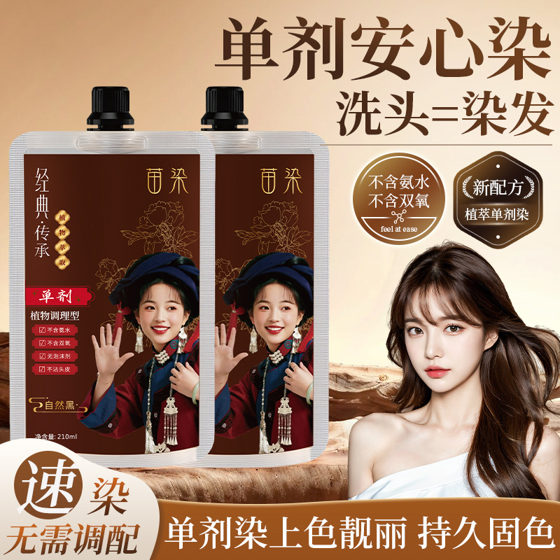 苗染单剂染发膏透明袋包染发剂植物不伤发盖白发不刺鼻在家染免漂