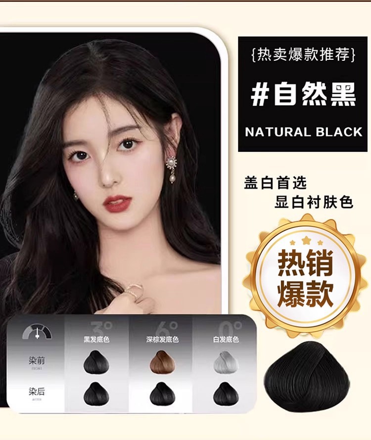 现货批发染发膏不沾头皮无双氧可盖白植物萃取染发剂遮白发黑发色