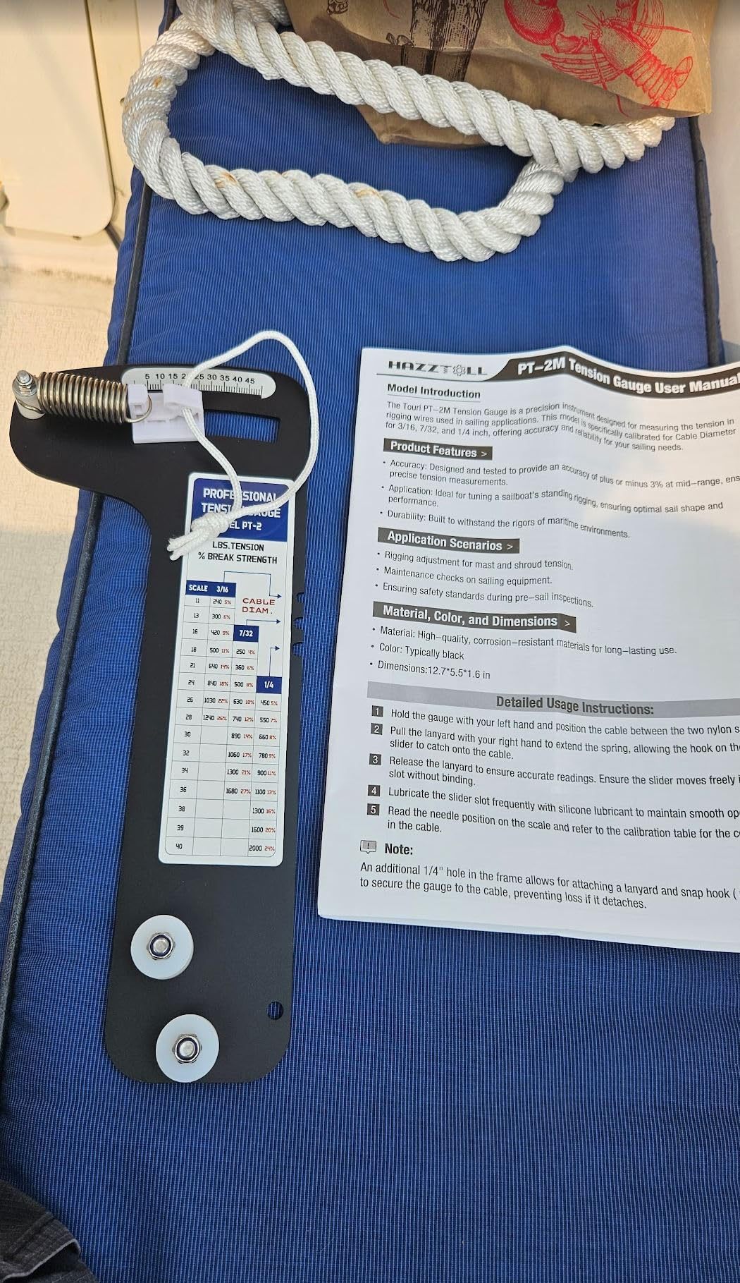 帆船索具张力计PT-2适用于 3/16、7/32 和1/4 英寸钢缆量程2000磅