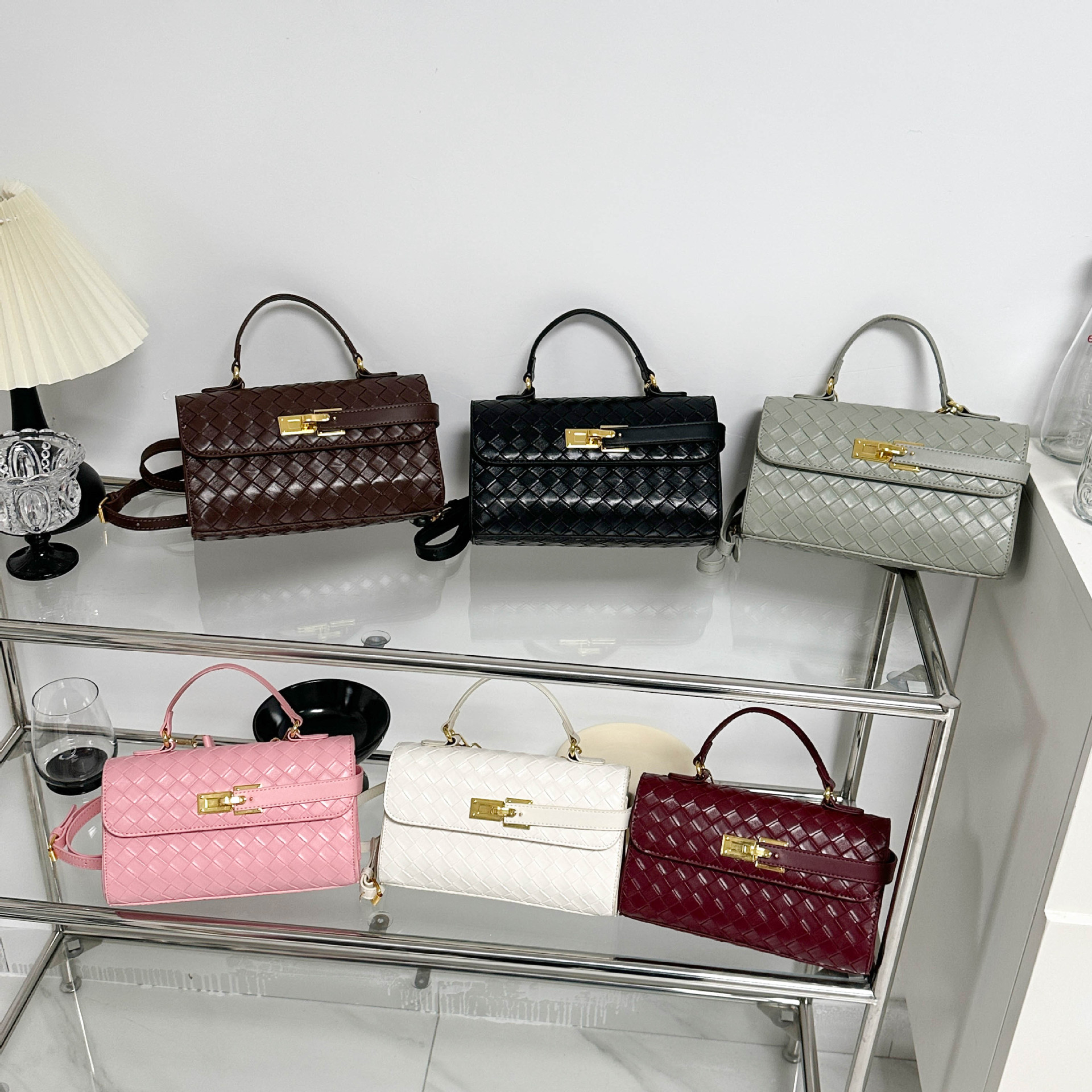 时尚编织格纹美拉德凯莉包高级感小众手提斜挎包小香风轻奢小方包