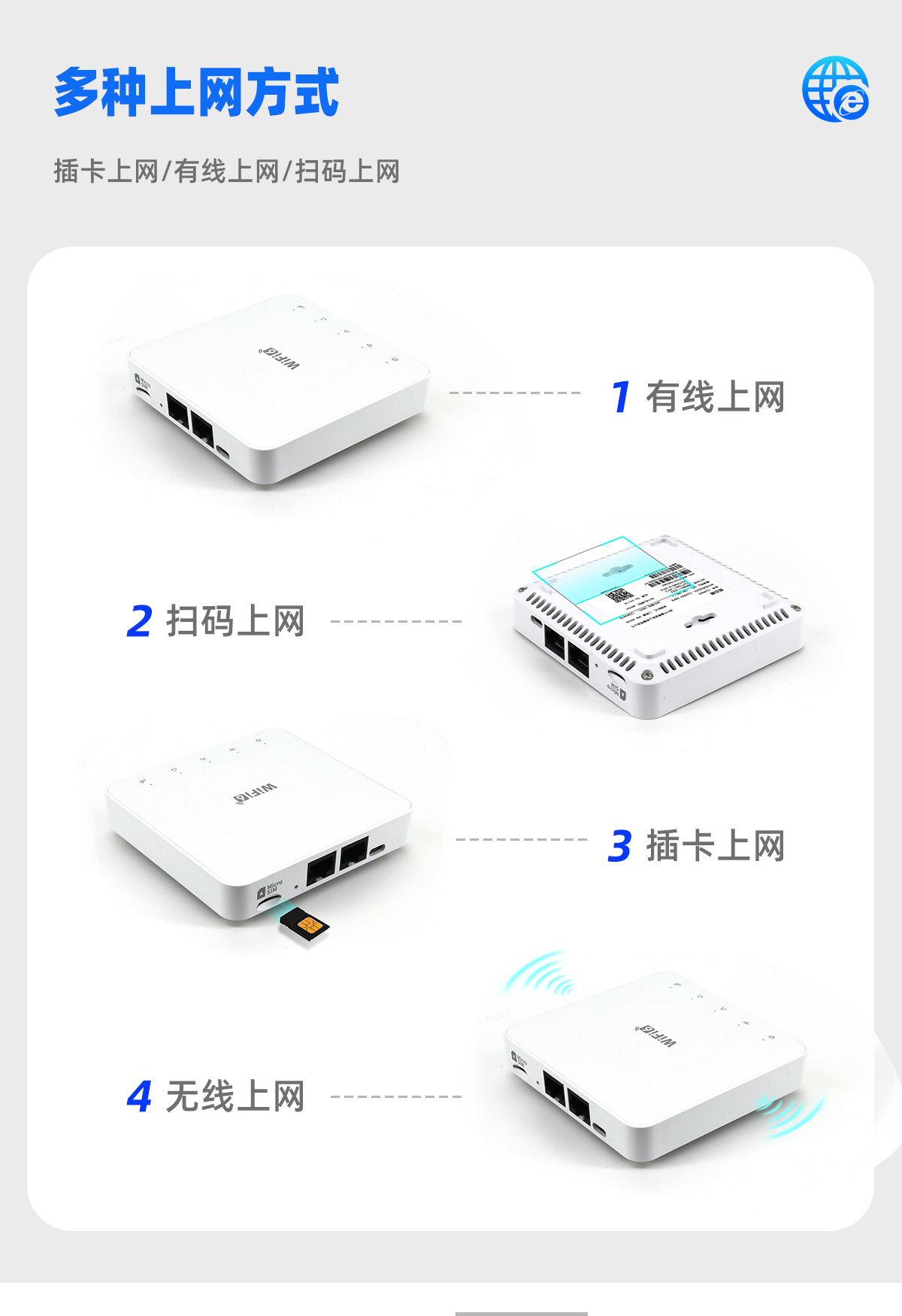 SIMカードを挿入した4Gワイヤレスルーターは、海外で利用可能なWiFiから有線インターネットへの転送に使用できます。