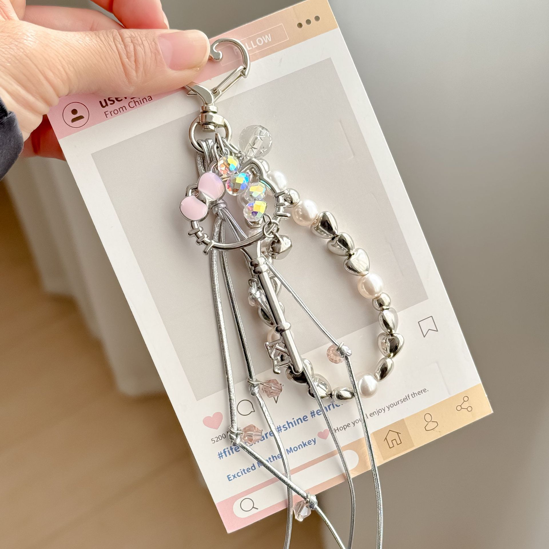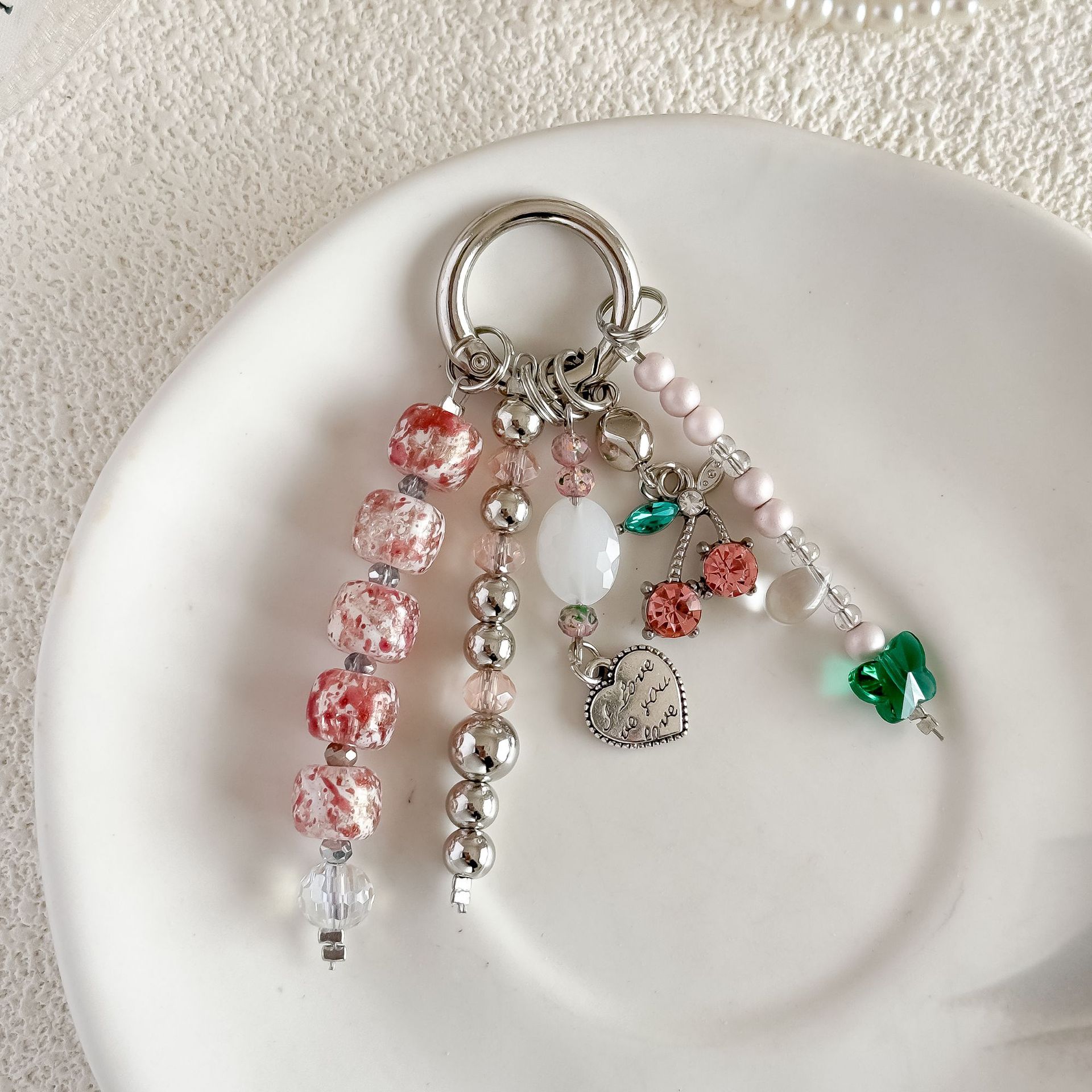 原创轻奢风水晶樱桃蝴蝶手机链水晶串珠车钥匙扣爱心甜美包挂装饰
