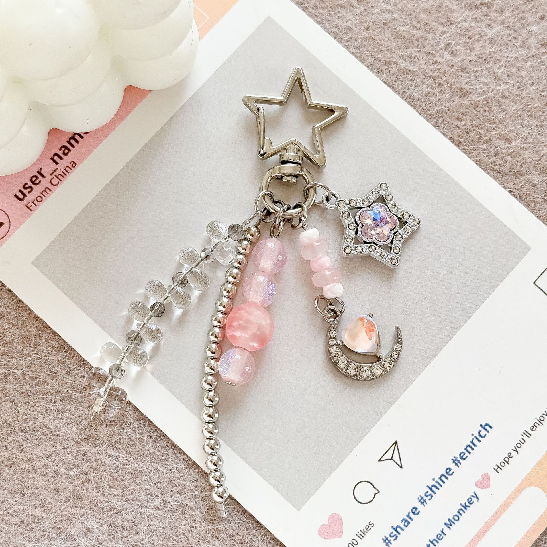 小清新甜美粉色月亮包挂手工串珠五角星钥匙扣箱包挂件饰品批发