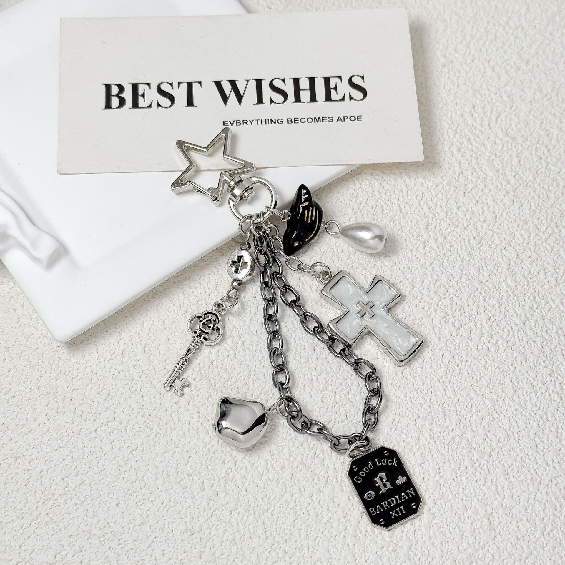 原创新品朋克十字架包包挂件黑色飞鸟个性钥匙扣不规则挂件装饰品