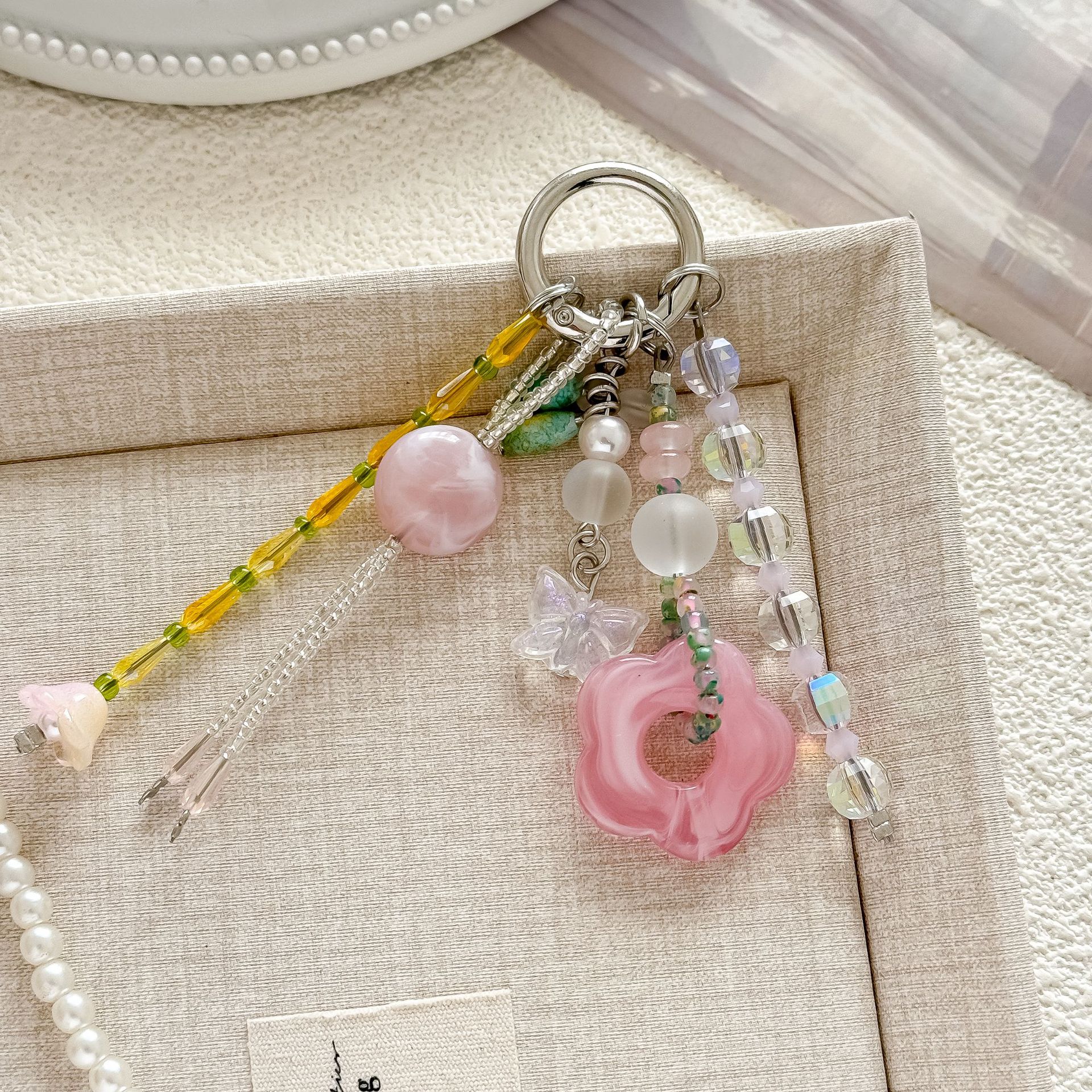 点彩原创小清新铃兰花箱包挂件手工串珠钥匙扣挂饰ins风手机链