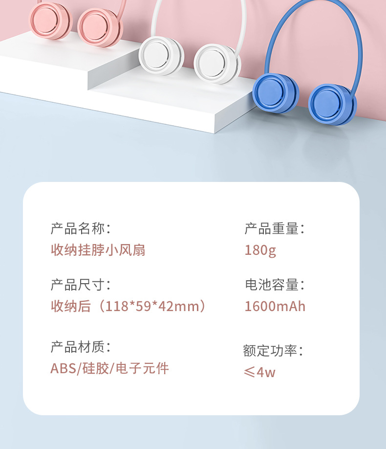 尺寸 挂脖风扇超长续航+800毫安,挂脖风扇超长续航+1600毫安