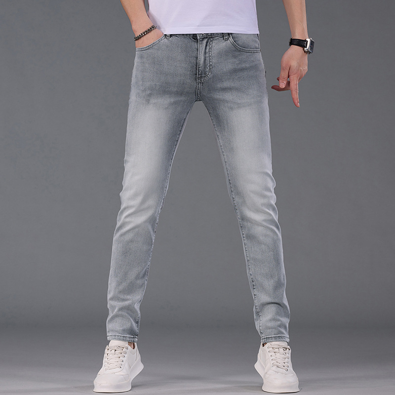 クロスボーダーヨーロッパ版メンズファッションブランドストレッチデニムパンツ春夏薄手の貿易トレンドスリムグレーメンズパンツ
