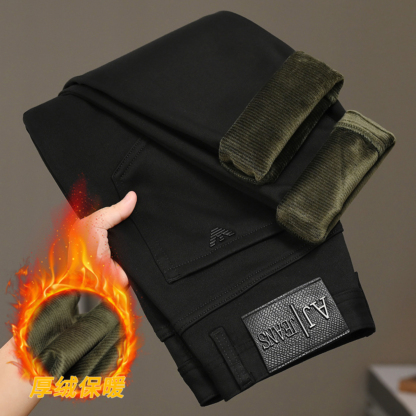 秋冬新款加绒加厚男士牛仔裤黑色保暖休闲百搭弹力修身小直筒长裤