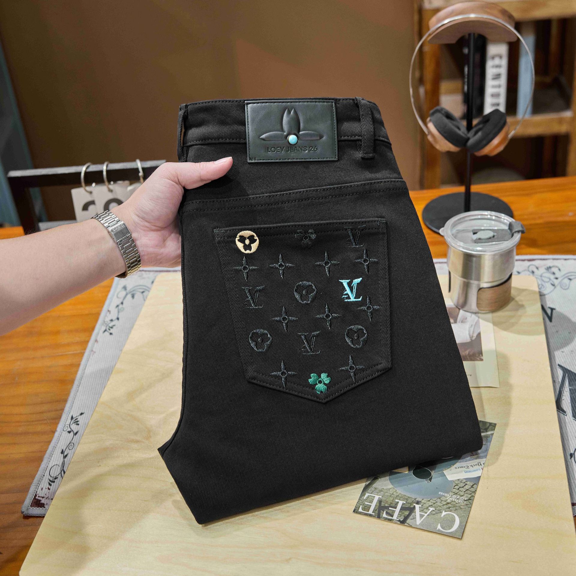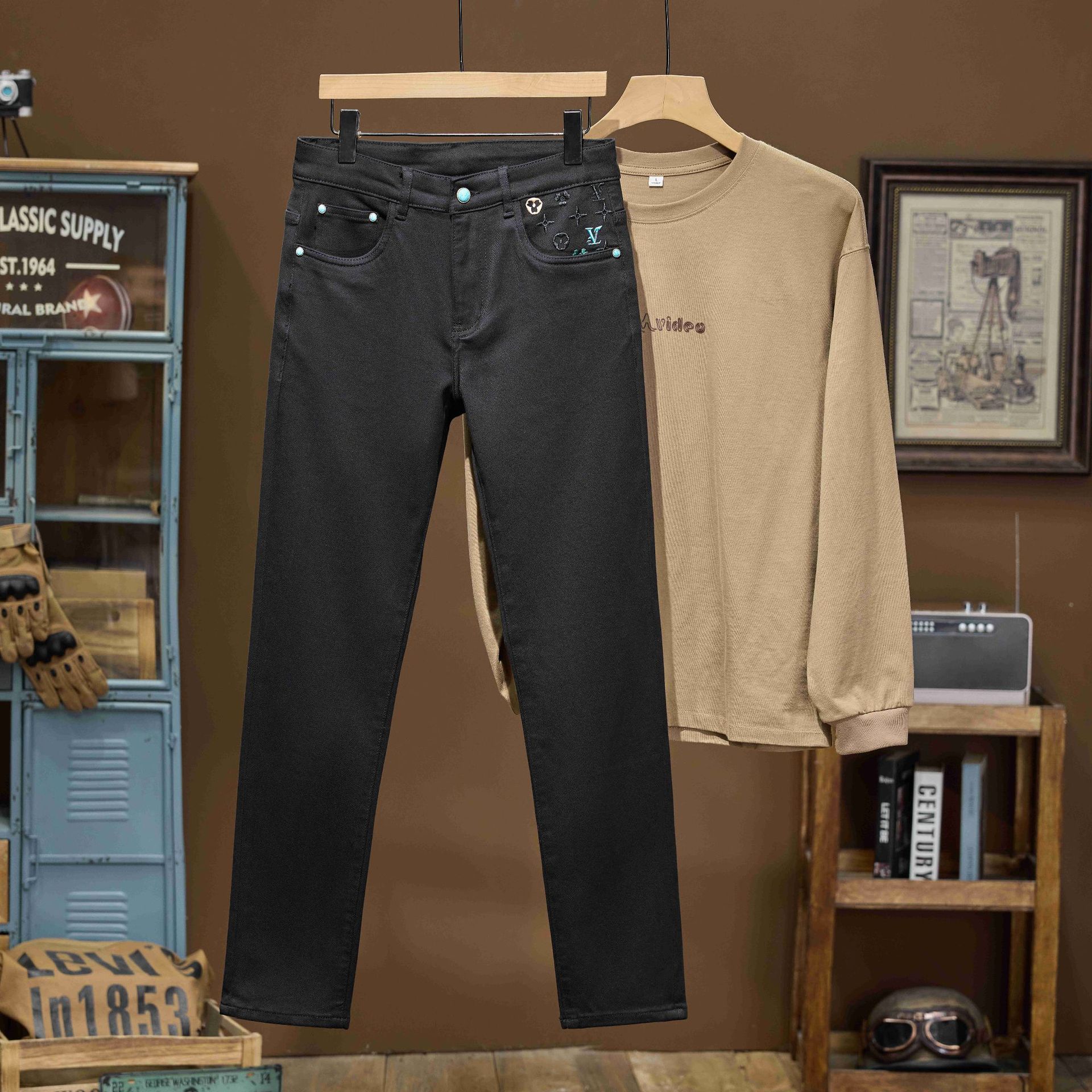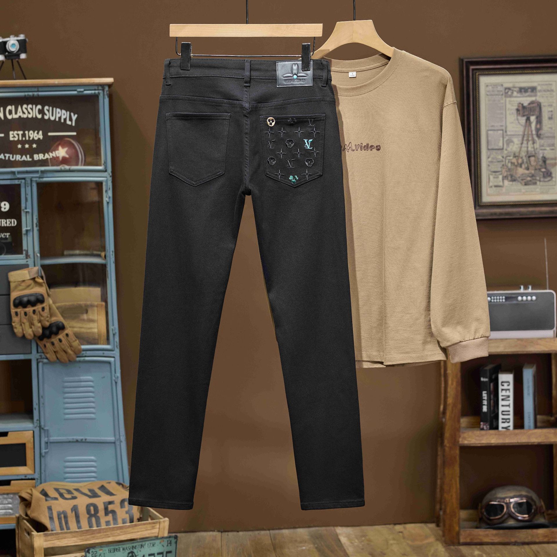 2025秋冬男士高品质水洗牛仔裤 欧洲站大牌刺绣 小直筒弹力长裤潮
