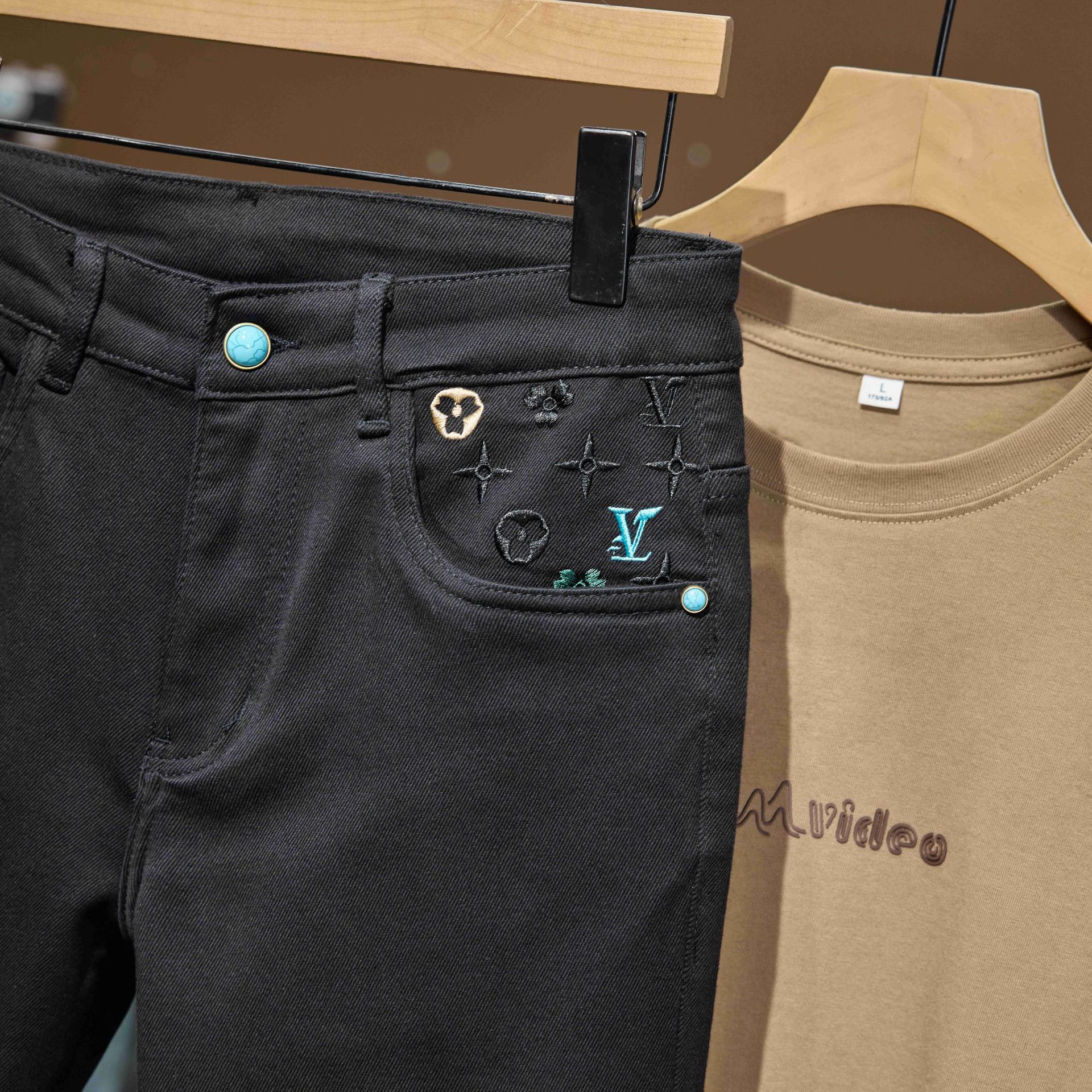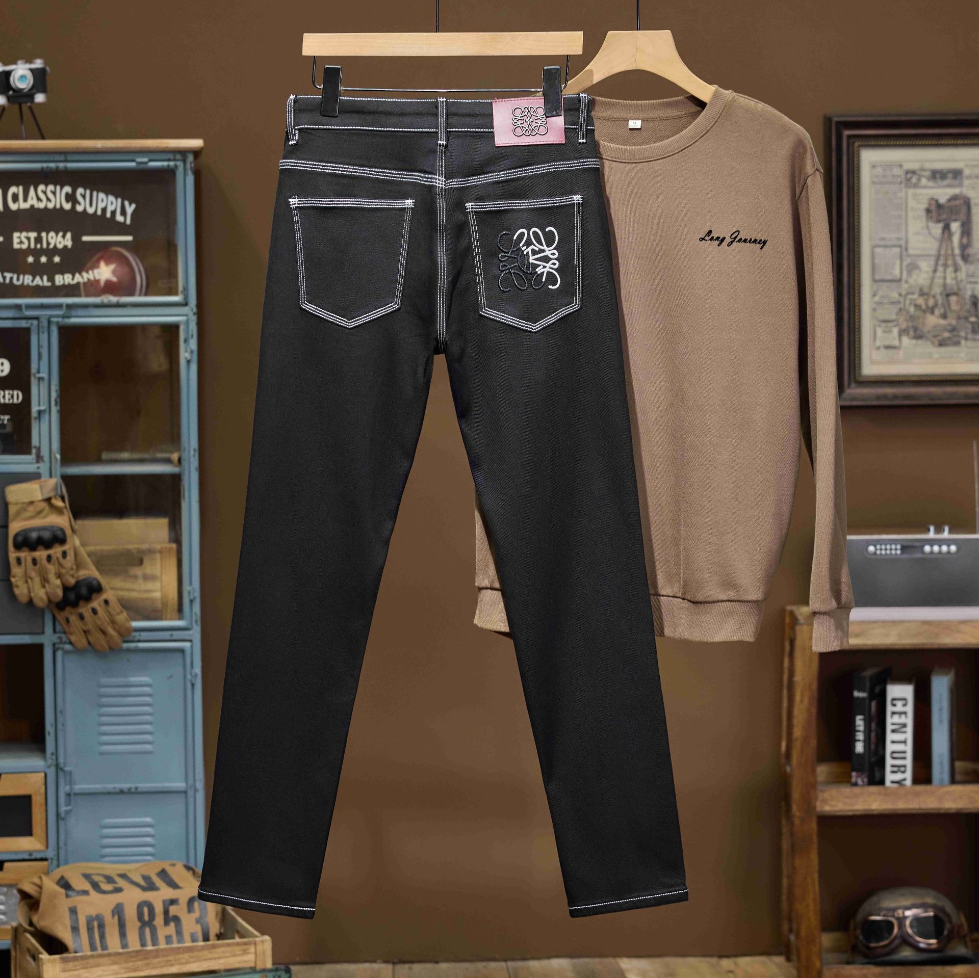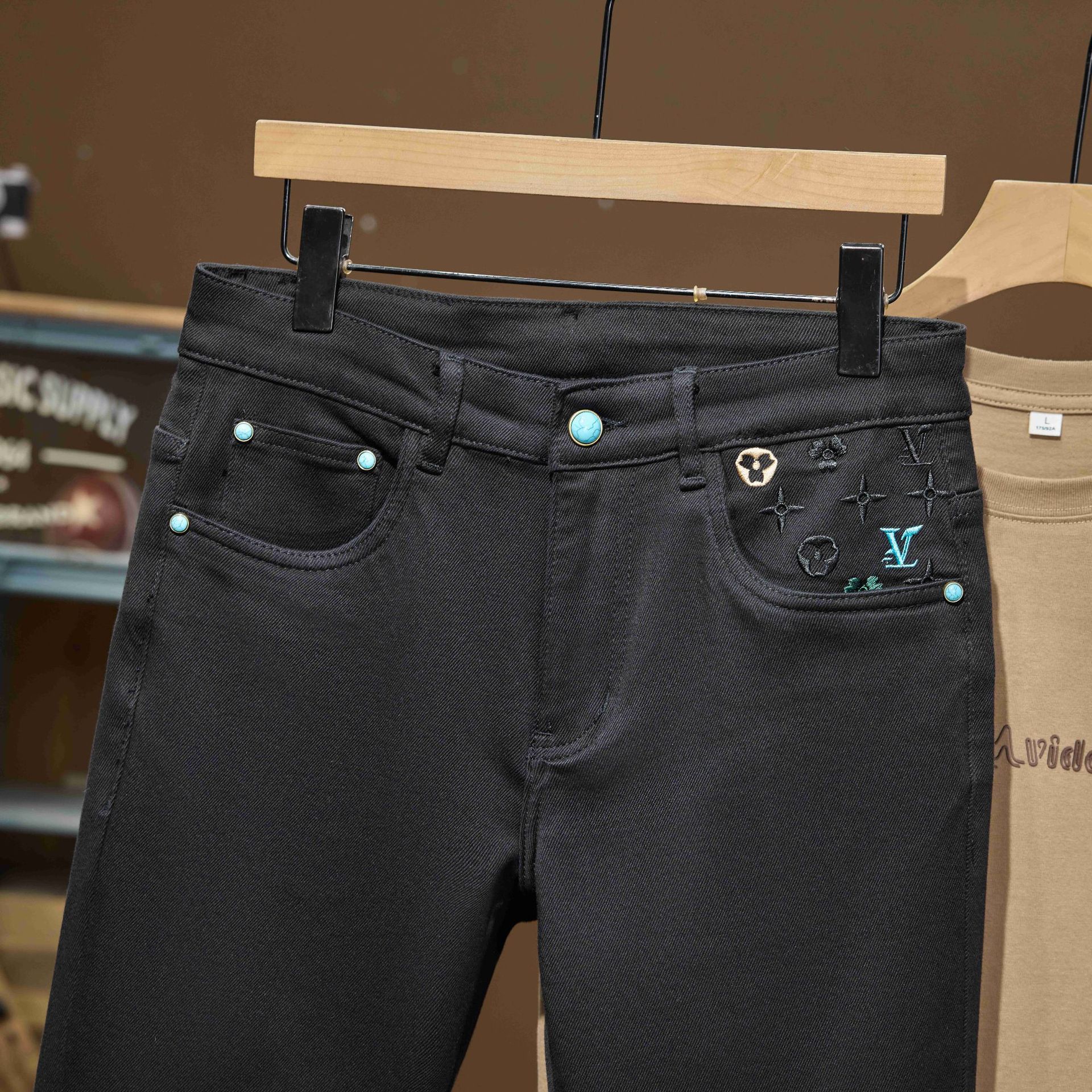 2025秋冬男士高品质水洗牛仔裤 欧洲站大牌刺绣 小直筒弹力长裤潮