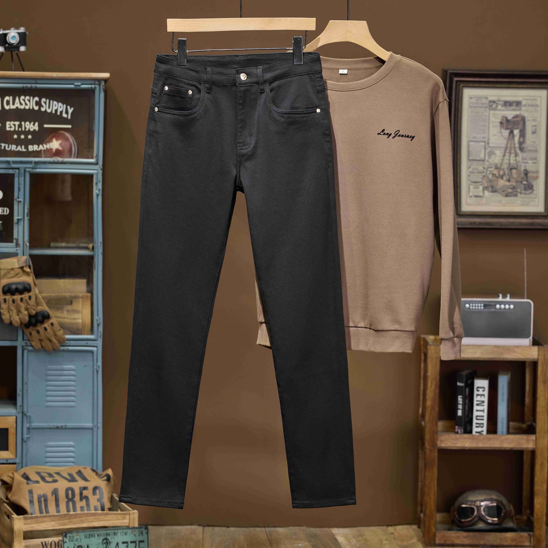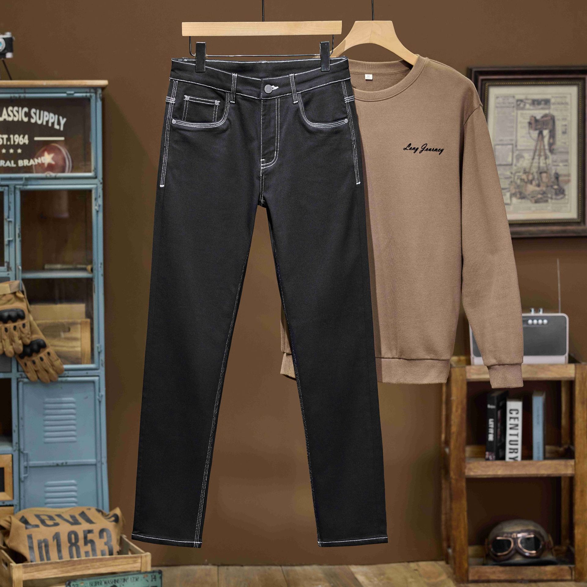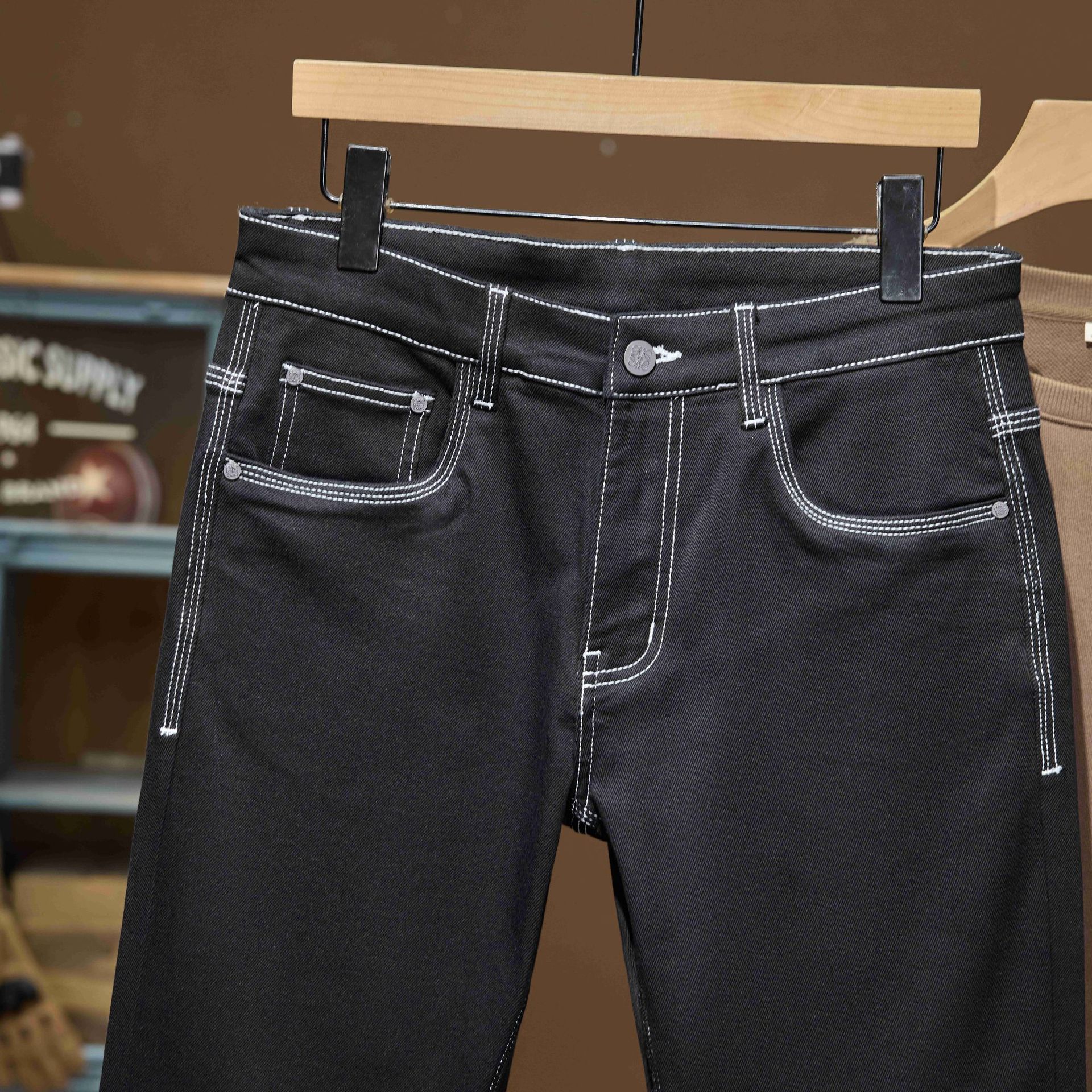 2025秋冬新款高端男士厚款牛仔裤弹力修身小直筒潮牌百搭休闲长裤