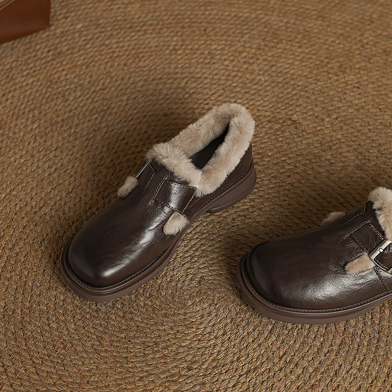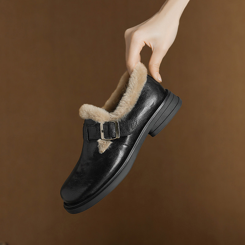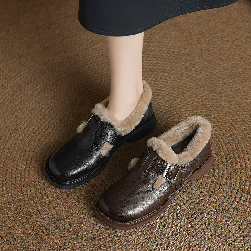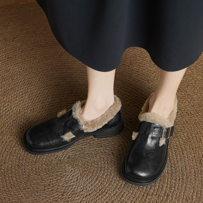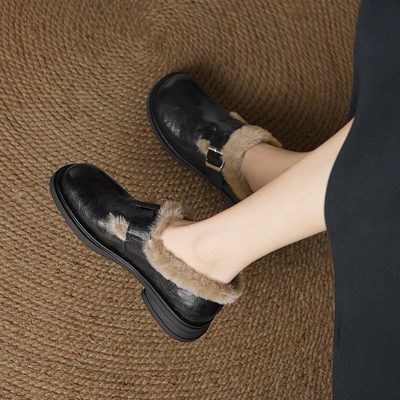 【在庫あり】2911裏起毛コットンシューズ レディース イギリス風 ファーシューズ 保温ローファー 2025冬