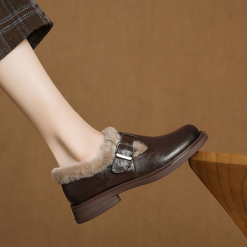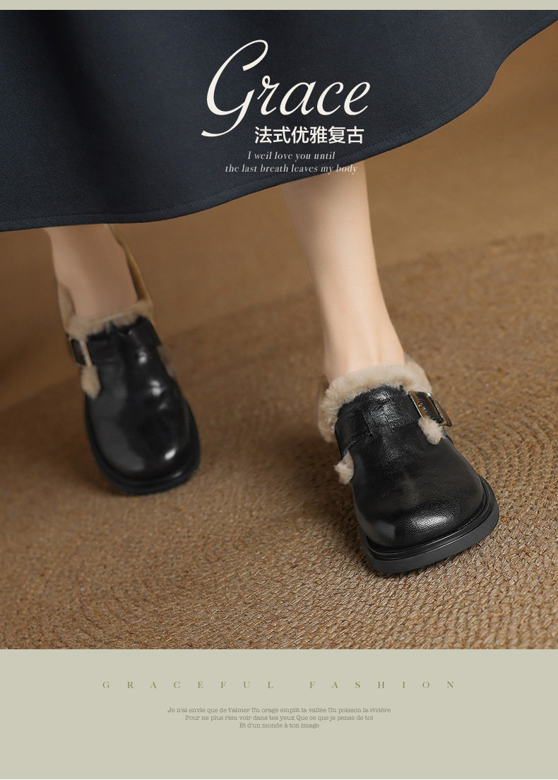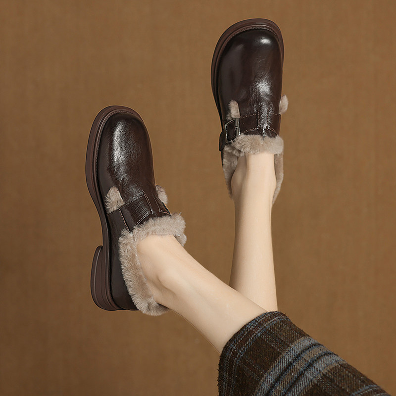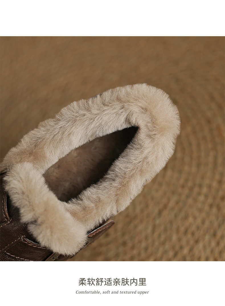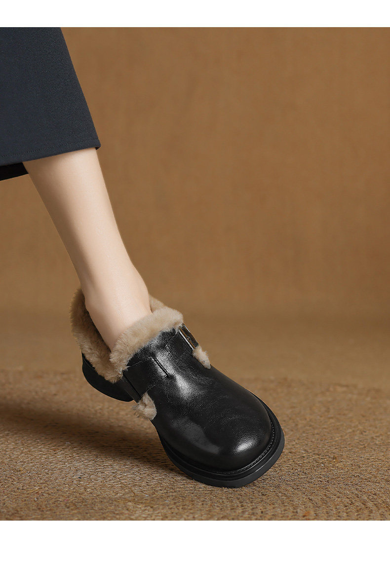 【在庫あり】2911裏起毛コットンシューズ レディース イギリス風 ファーシューズ 保温ローファー 2025冬