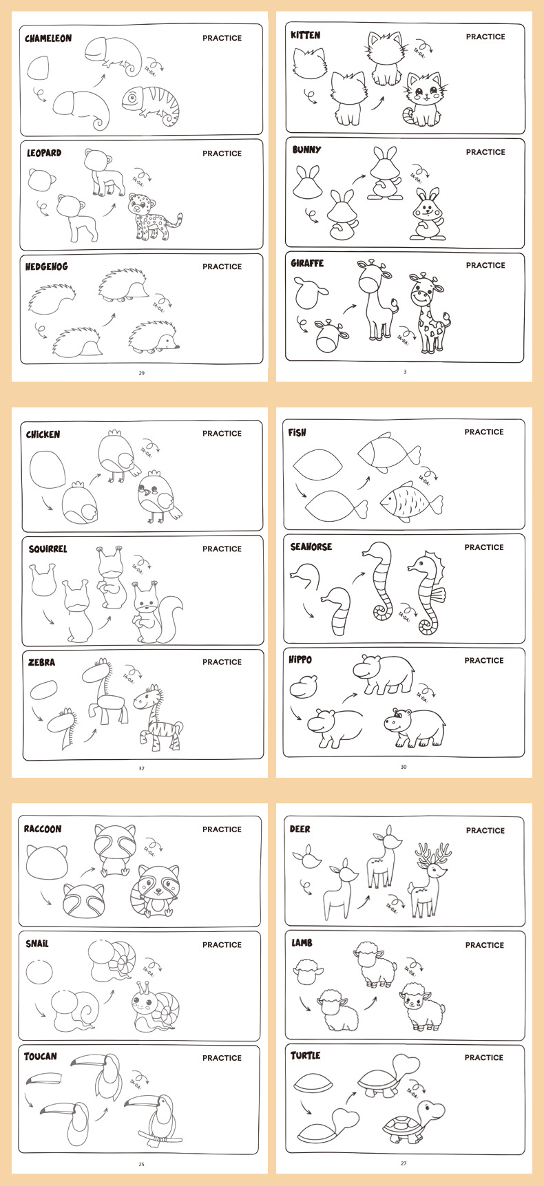 跨境代发教你如何绘画的32款可爱动物食物及精美创意图案绘画本册