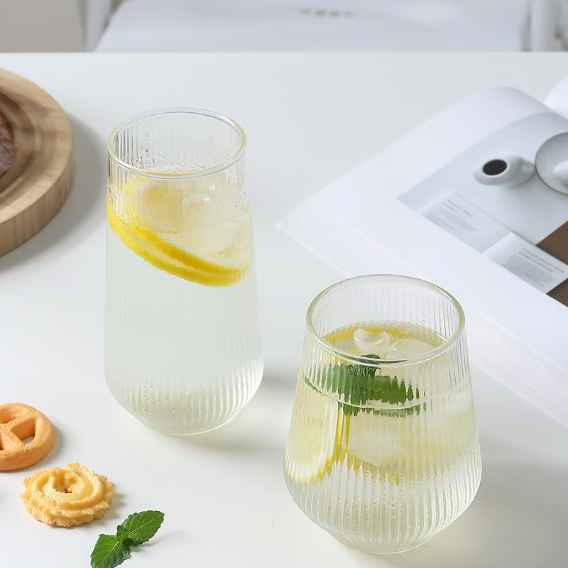日本式の手作りのストライプのグラスのウイスキーの杯の縦の紋様の杯の耐熱の杯のコップの氷のコーヒーの杯のジュースのコップ