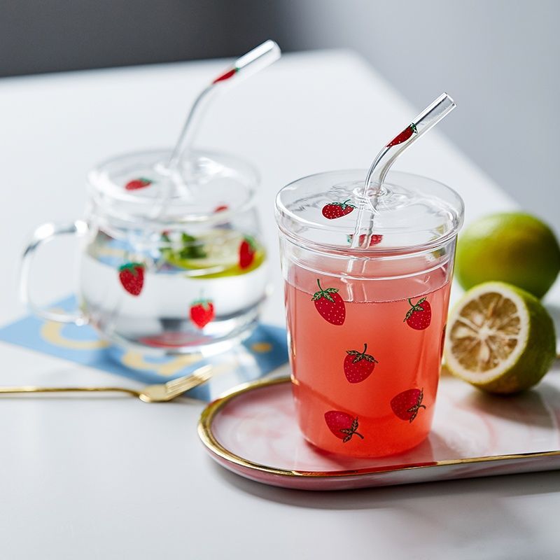 メーカー卸売り高ホウ素シリコン大容量コップ少女ジュースカップストローカップ蓋付き透明いちごストローカップ