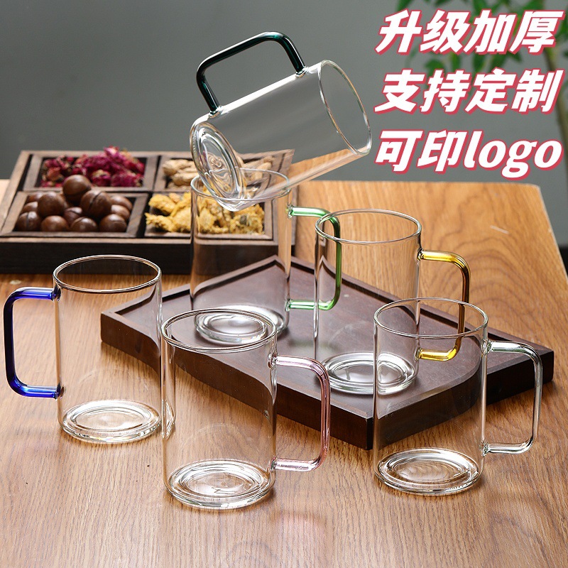 耐熱グラスティーカップ取っ手付きミルクカップオフィス透明グラスティーカップ冷水カップ家庭用