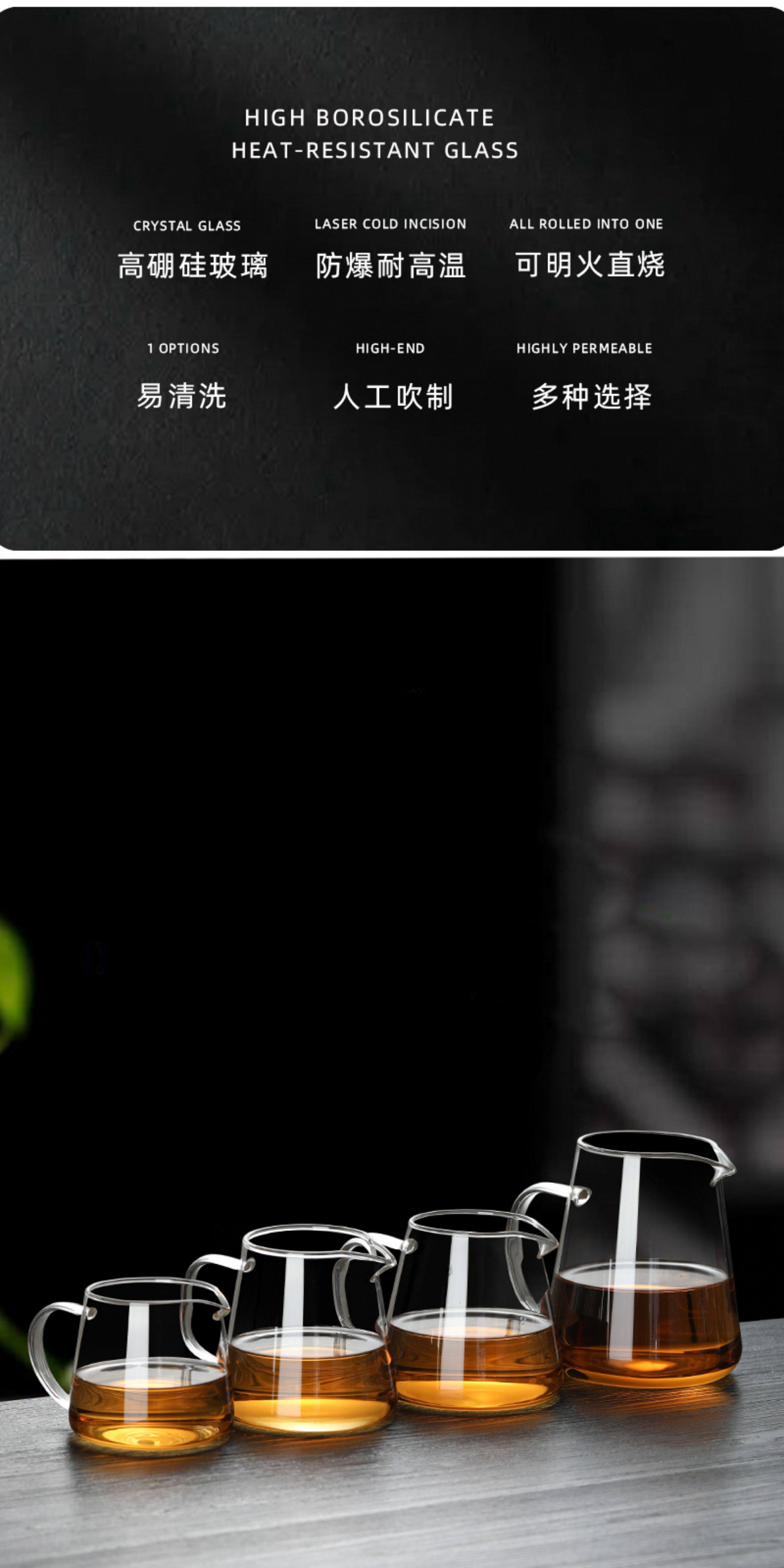 メーカー卸売高ホウ素シリコンガラス公道カップ耐高温ガラス分茶器大サイズ茶海振音電気商直供