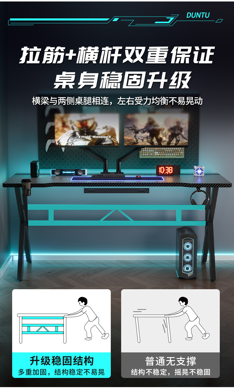 电竞桌二段分板台式家用可装显示器支架碳纤维纹理实木游戏电脑桌