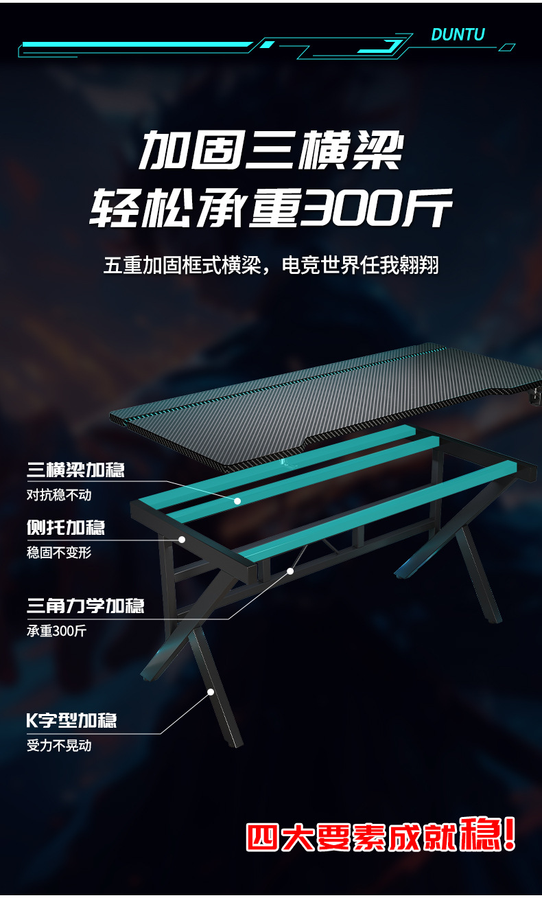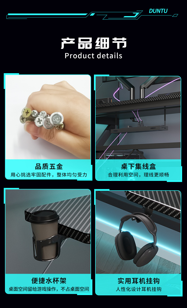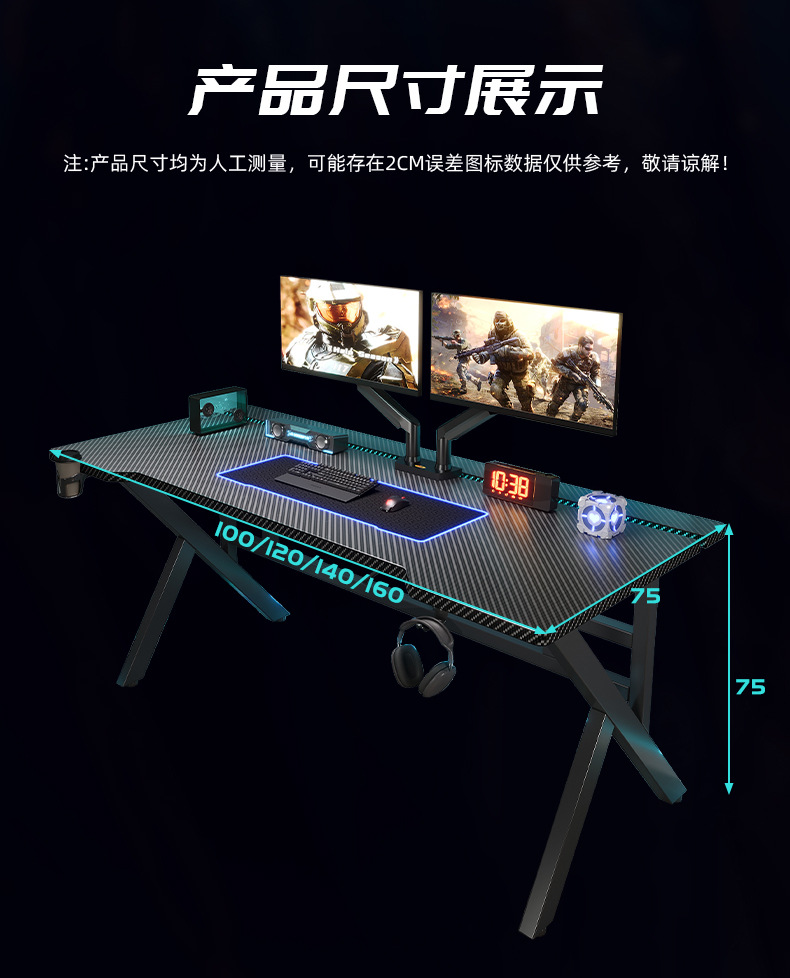 S3可装机械臂碳纤维纹理电竞桌游戏桌台式电脑桌家用桌子出口