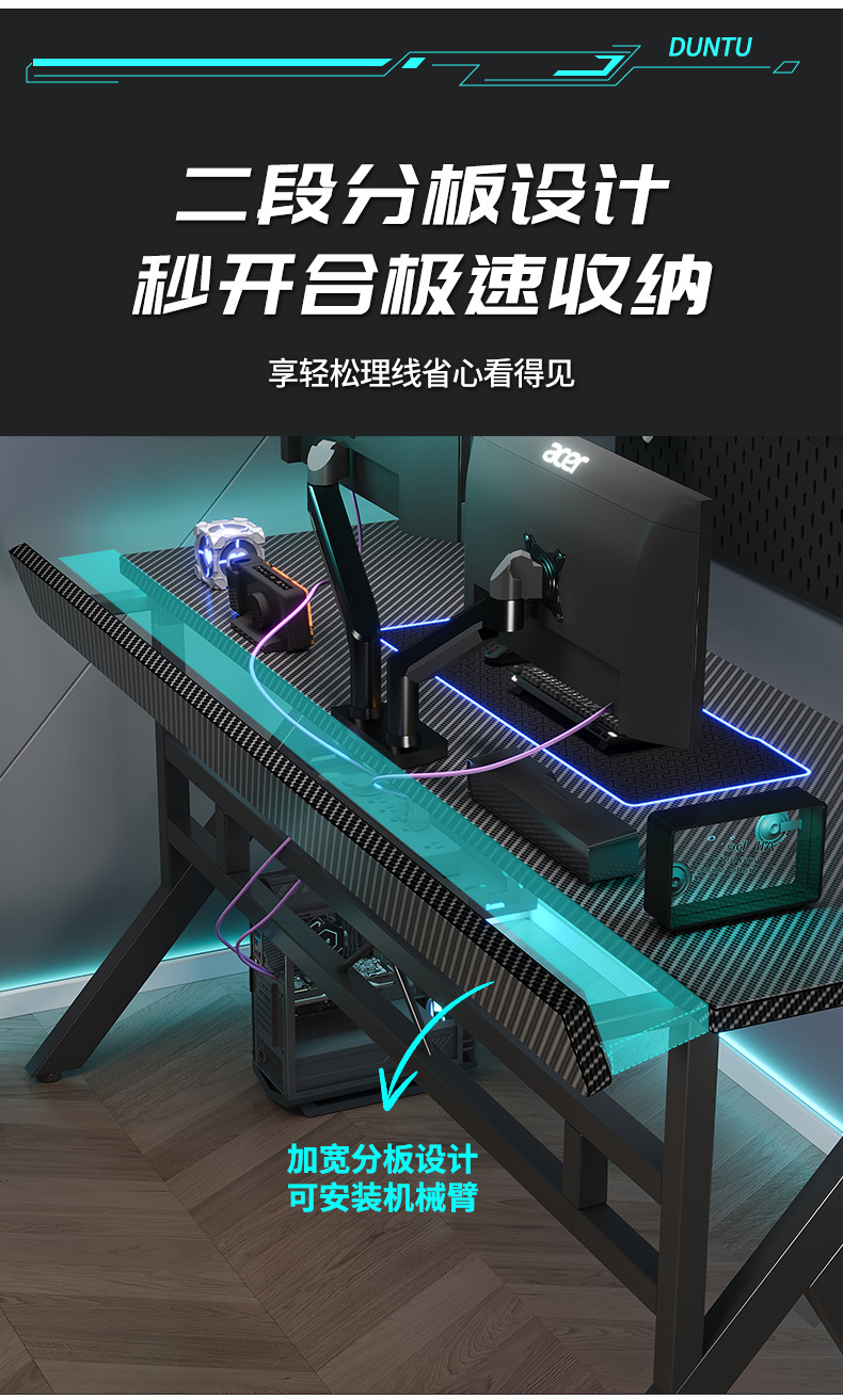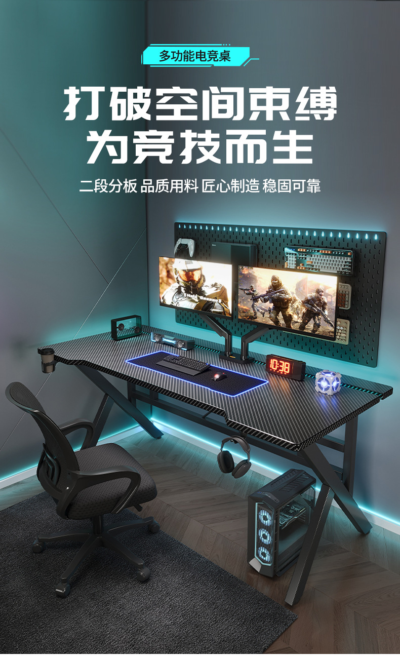 电竞桌二分段台式电脑桌家用可装机械臂碳纤维网红游戏办公桌子