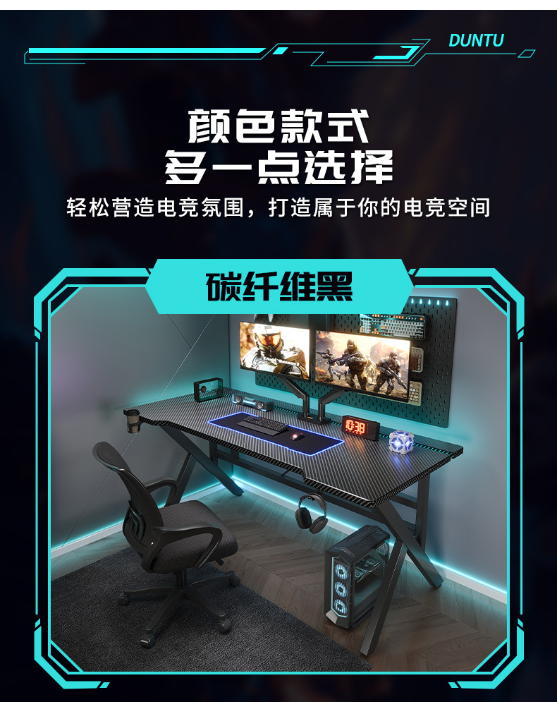 电脑桌台式二段分板简约碳纤维纹理桌面游戏竞技学习写字办公桌子