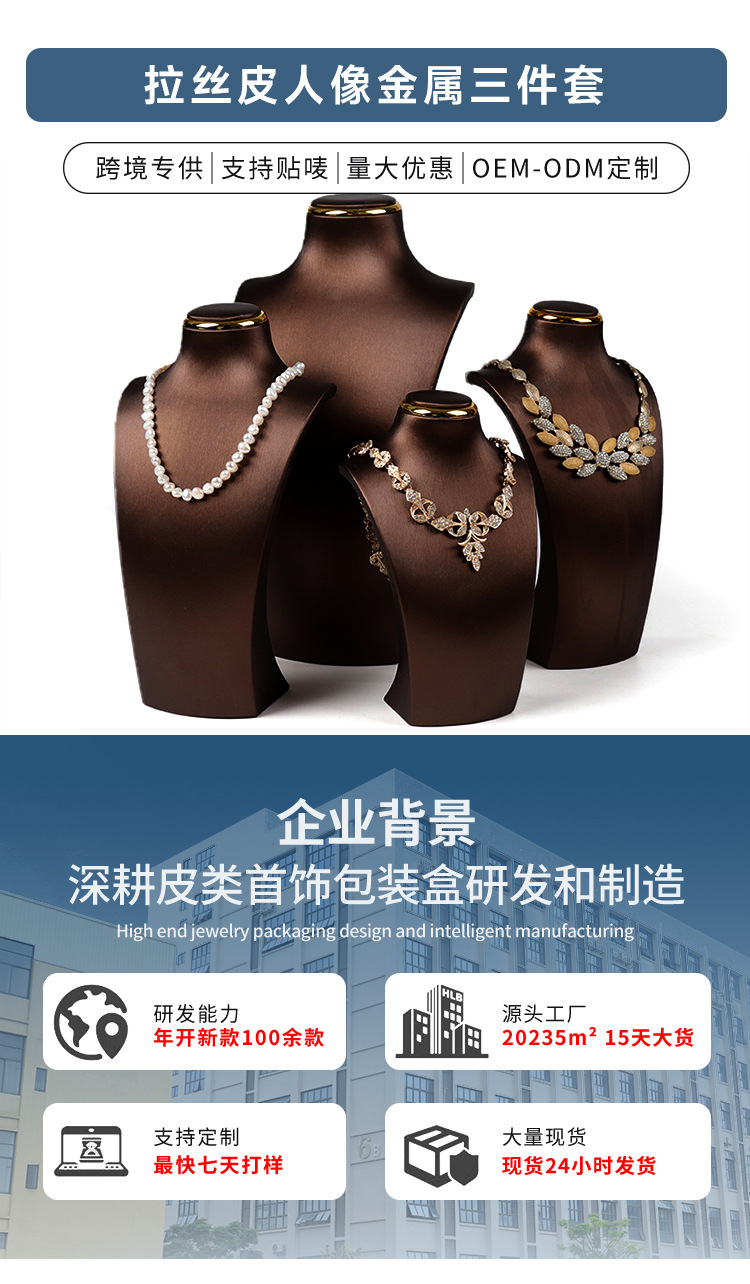 PU拉丝皮高级感人像脖子项链展示架珠宝展示道具饰品首饰展示架