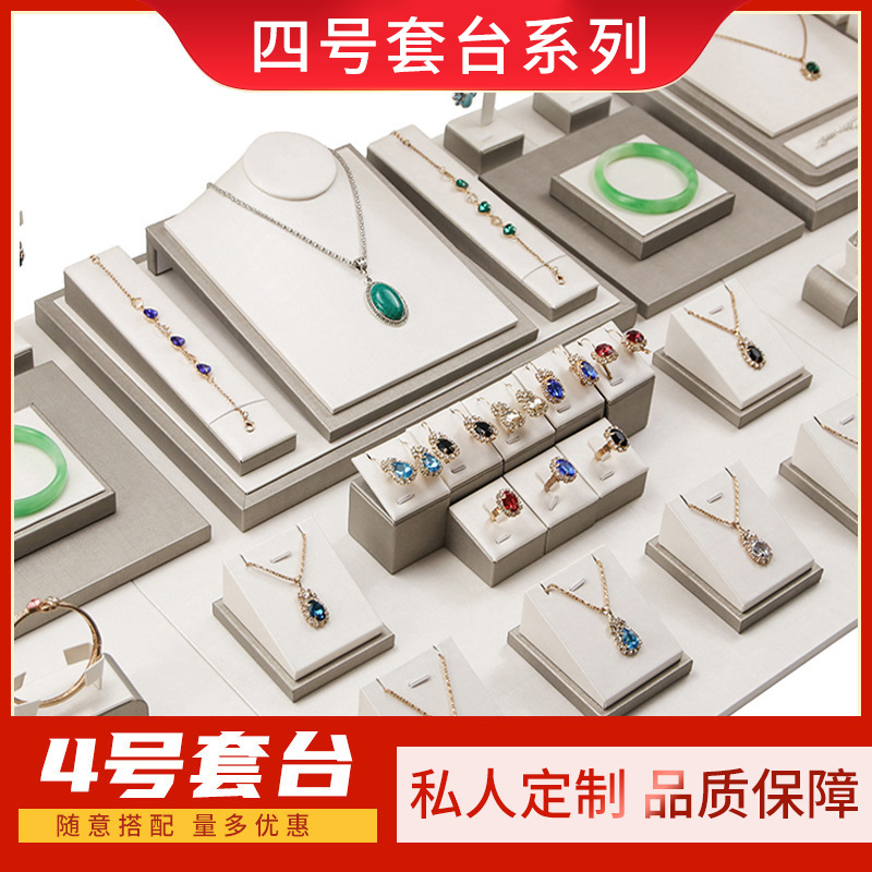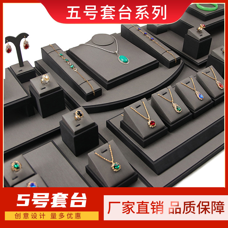 グレーのつや消しレザー製ジュエリーディスプレイスタンド、リング・ペンダント展示セット、ジュエリーカウンター用小道具、既製品収納ボックス