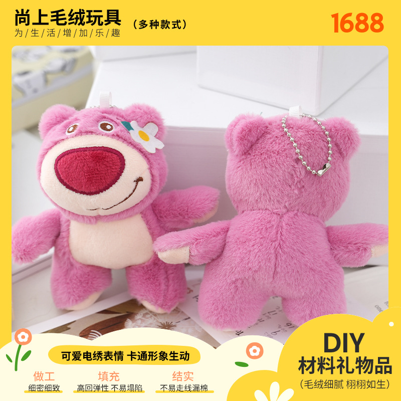 网红玫玫熊公仔可爱玩偶小雏菊头饰 毛绒摆件背包挂饰摆摊礼物