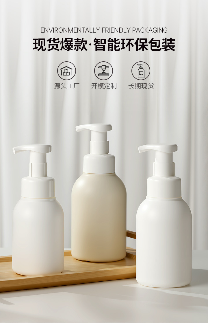 现货HDPE材质慕斯瓶米黄色500ml圆形洗手液泡沫瓶300/400ml起泡瓶