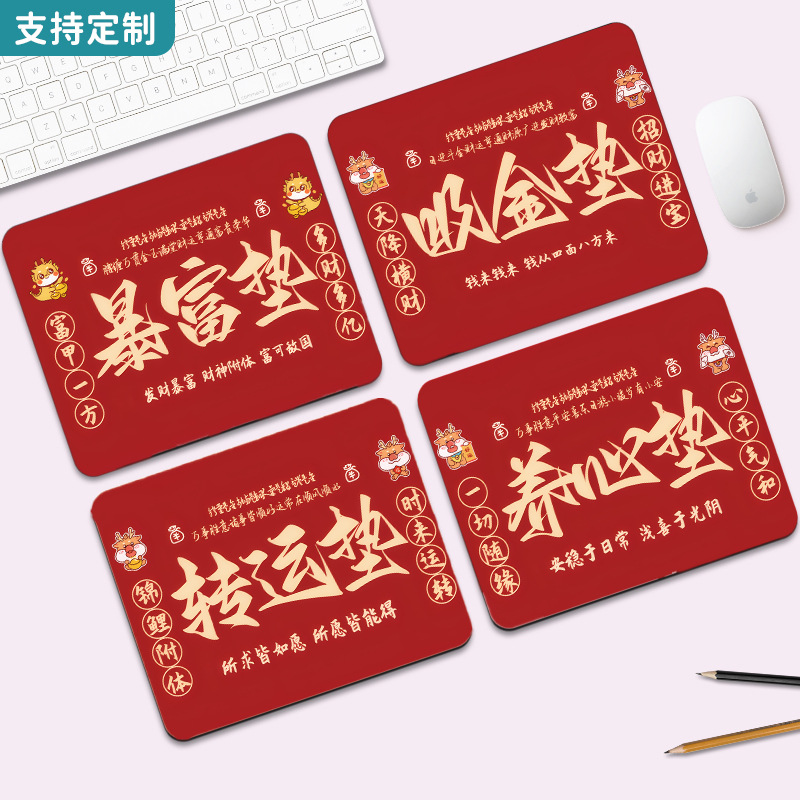 马年发财鼠标垫小号男女生学习桌垫笔记本电脑便携键盘垫2026红色