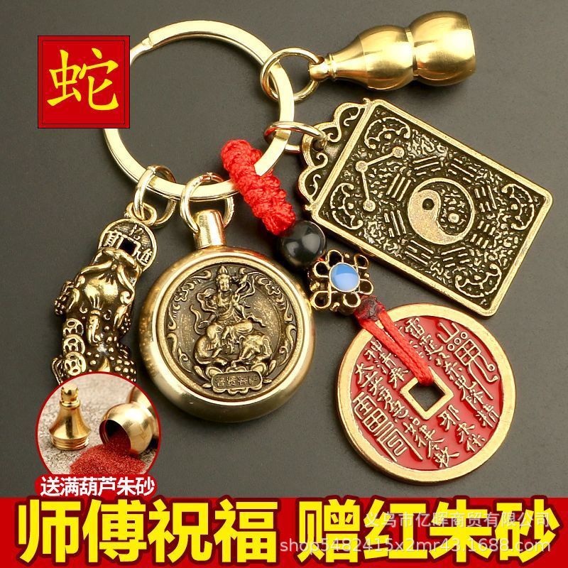 2025年蛇年十二生肖守护神钥匙扣挂件山鬼花钱铜貔貅牌