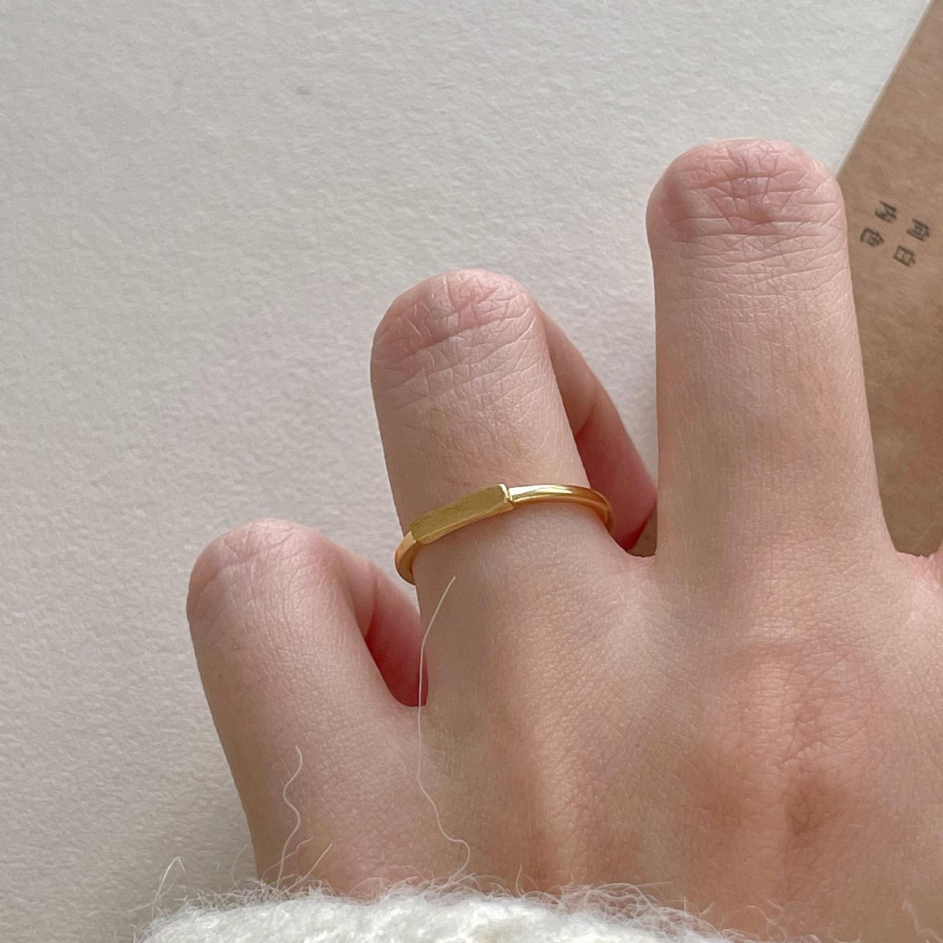 白铜镀厚银拉丝长方开口戒指女简约ins风小众设计高级感日常通勤