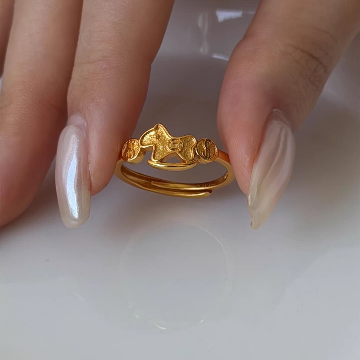 《钱币小马》2026新年好寓意时尚精致高级气质金色开口戒指