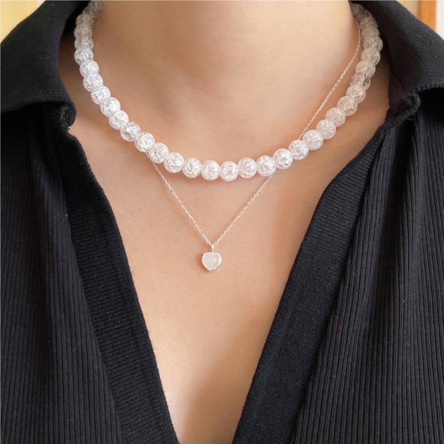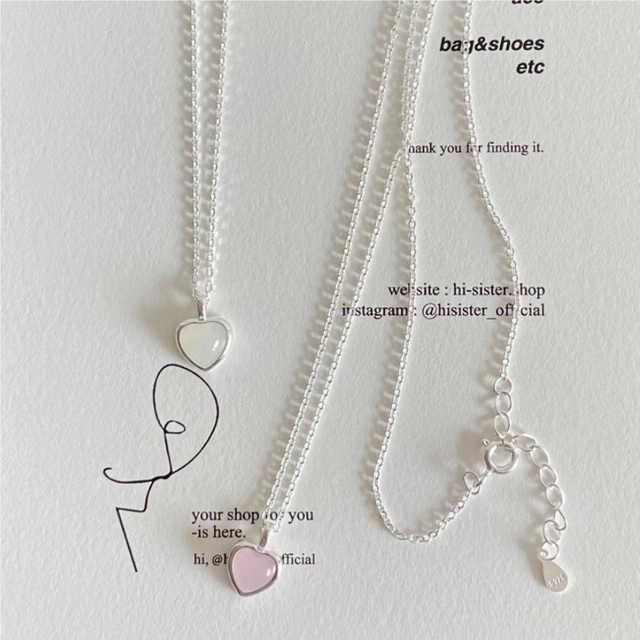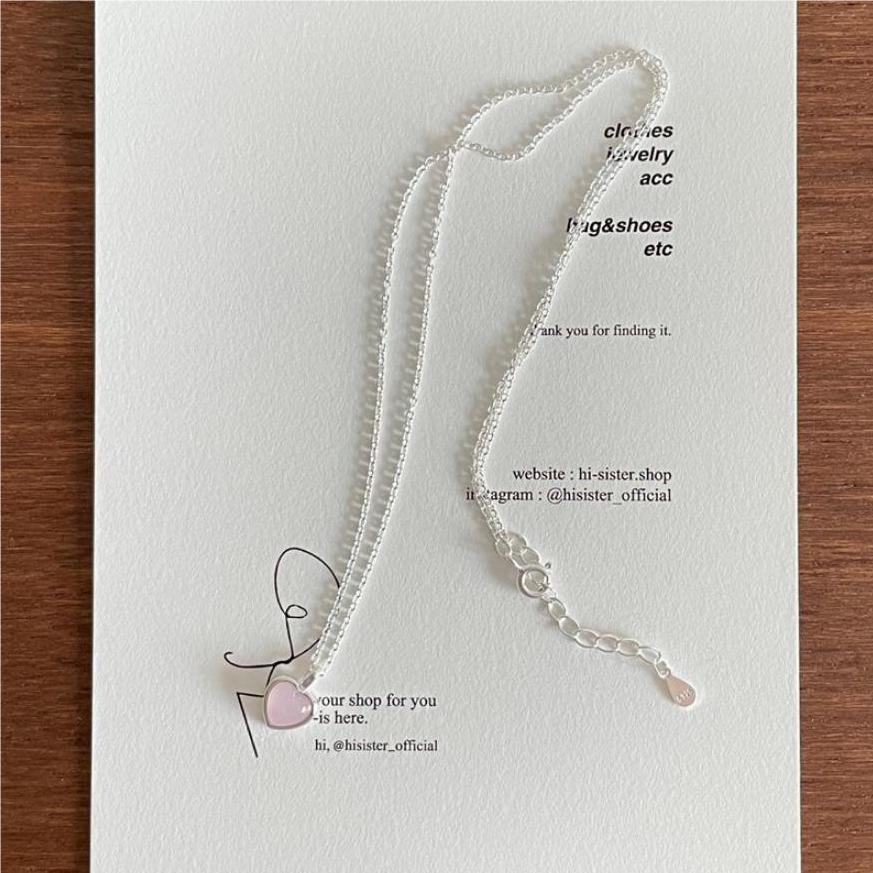 韩国博主日常叠戴甜酷白铜镀厚银粉色爱心超细精致简约锁骨链项链