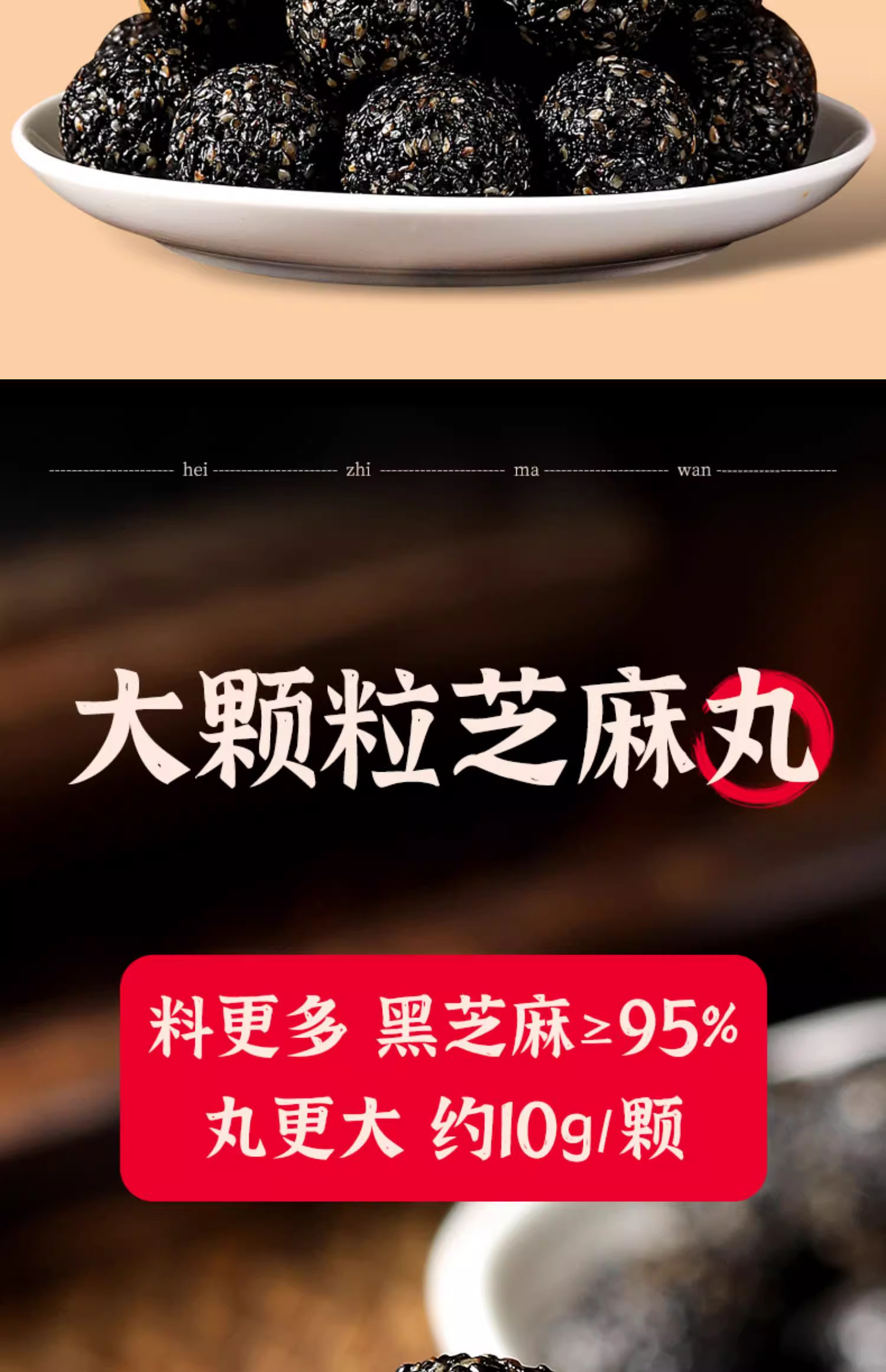 包装规格 纯黑芝麻丸:买125g+送125g【共250g约25颗】,纯黑芝麻丸:买250g+送250g【共500g约50颗】,纯黑芝麻丸:买500g+送500g【共1000g约100颗】,纯黑芝麻丸:买1000g+送1000g【共2000g约200颗】