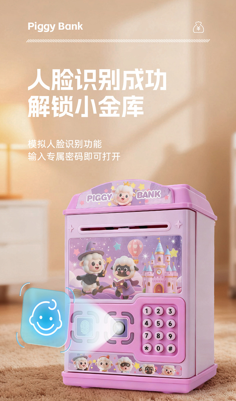 跨境存钱罐儿童多功能大容量卡通人脸指纹存钱罐卡通男女孩礼物