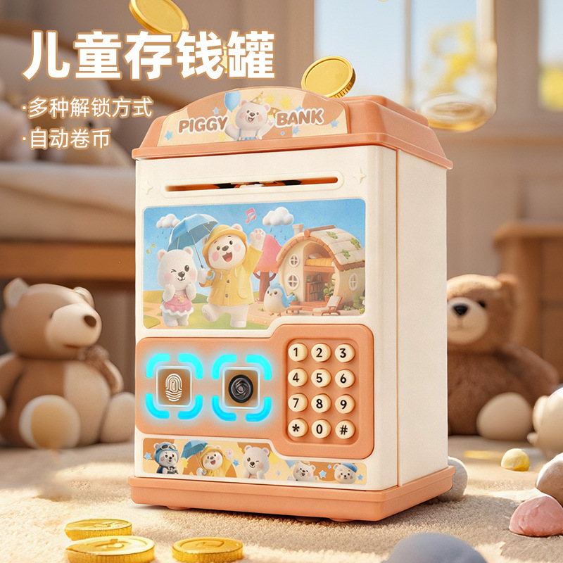 新款儿童存钱罐密码解锁自动卷钱储蓄大容量可存取保险柜礼物玩具