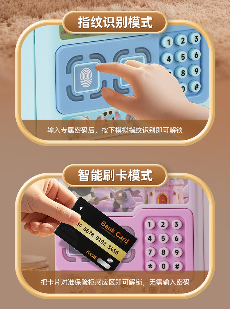 库洛米儿童存钱罐刷卡指纹储蓄罐只进不出密码箱大容量零钱罐玩具