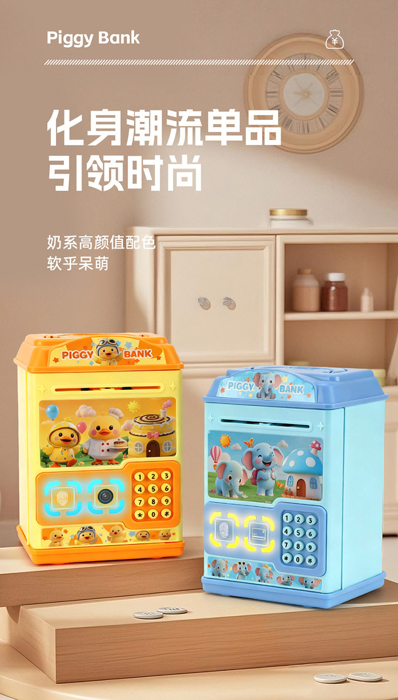 2025新款儿童卡通存钱罐创意密码解锁储蓄大容量可存取保险柜玩具
