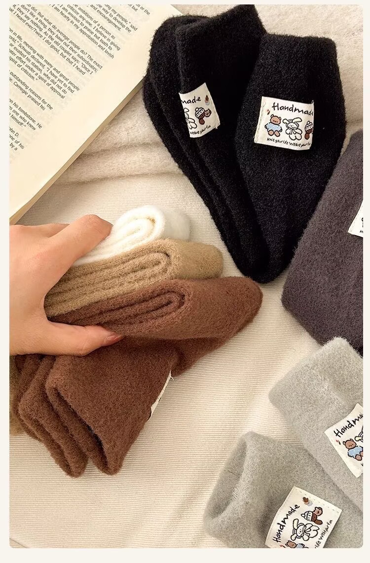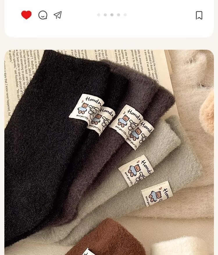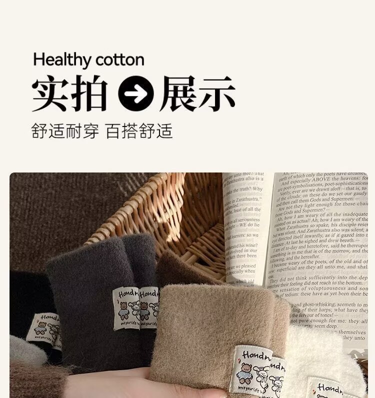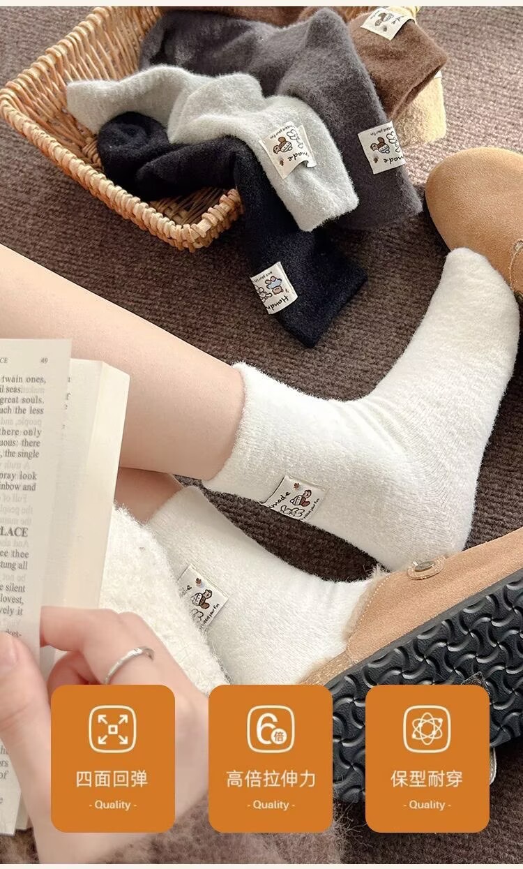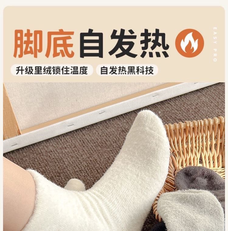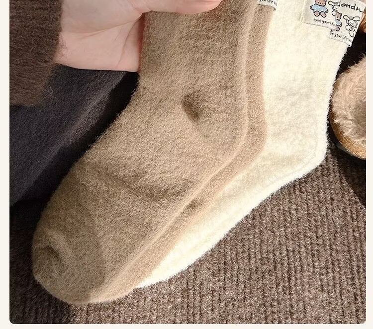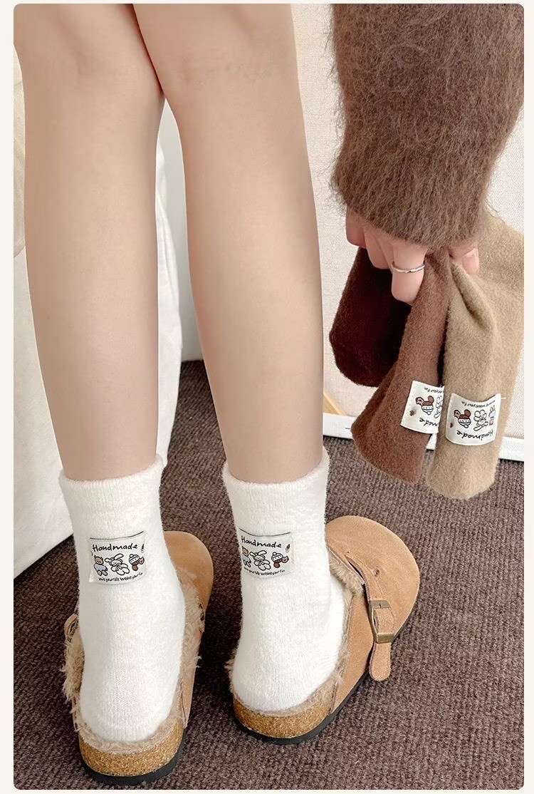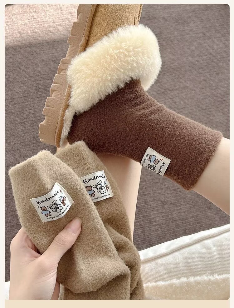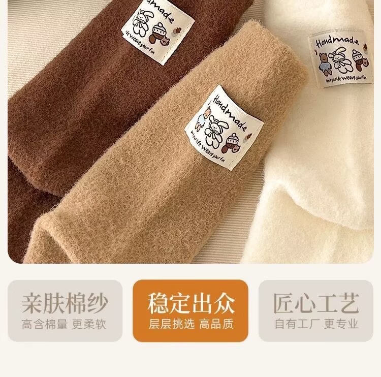冬季澳绒袜子女可爱卡通毛茸茸中筒袜加厚保暖居家睡眠百搭月子袜