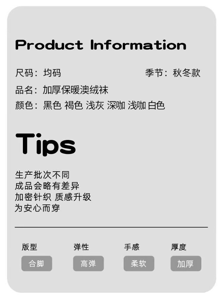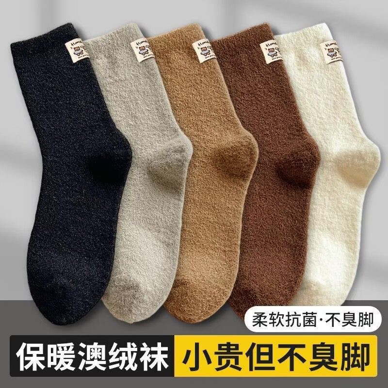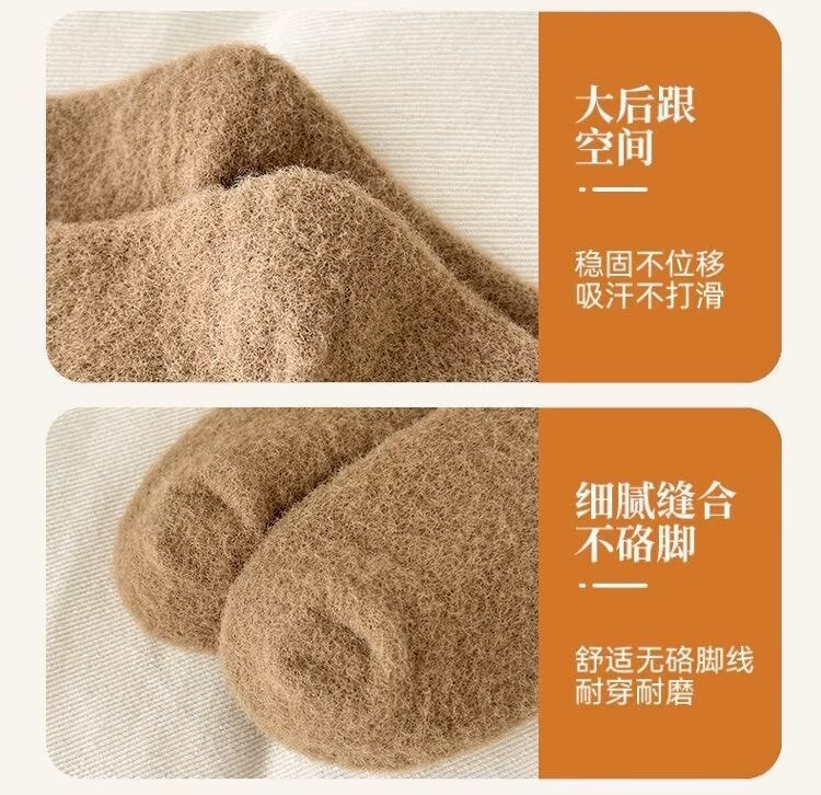 澳绒袜子女款秋冬季布标纯色加绒加厚保暖月子袜中筒地板袜睡眠袜
