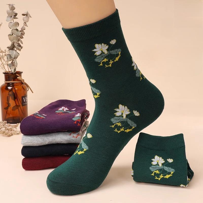 【5足入り】ママ靴下女子春秋国風ミドルストッキング高齢おばあちゃん靴下耐磨耗防臭四季女