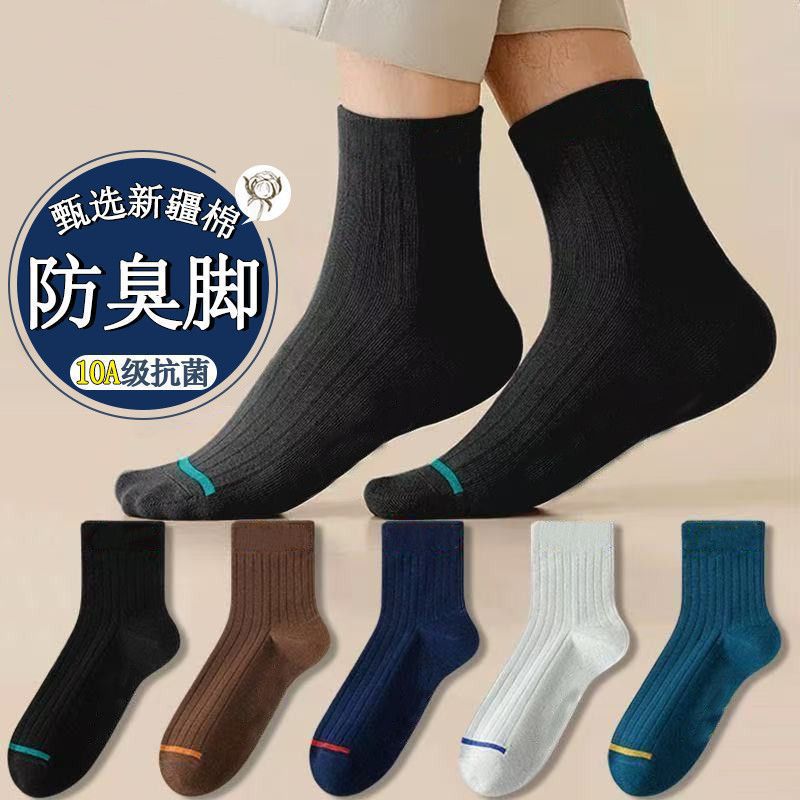 7a抗菌新疆全綿防臭綿靴下男性中筒靴下四季ビジネス吸汗通気純綿靴下男性靴下