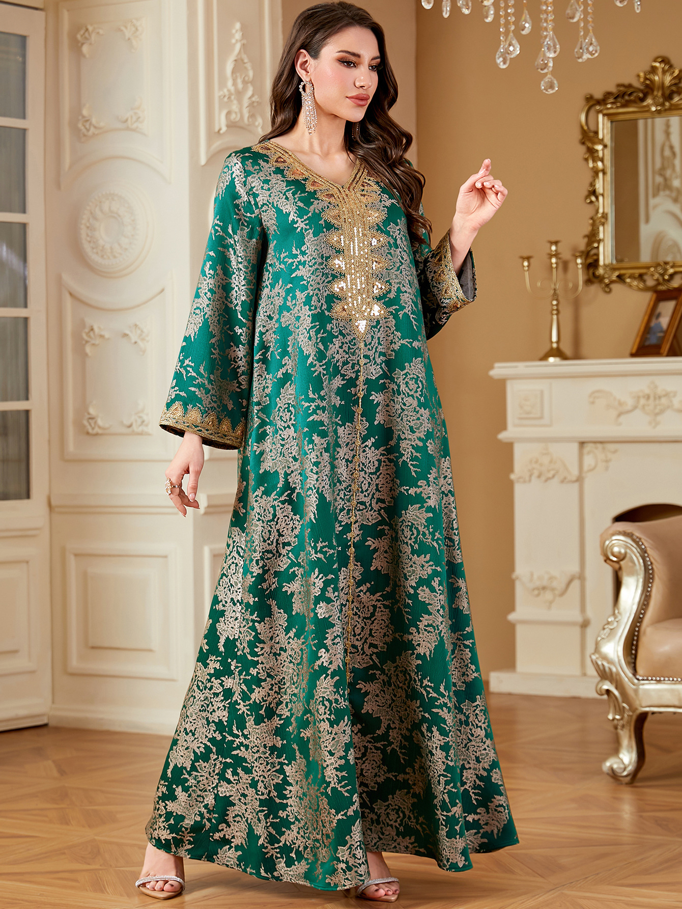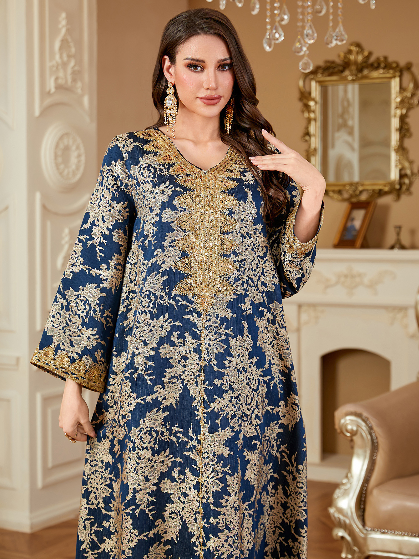 3203国境を越えた中東イスラム教徒女装abaya四季ファッション女装卸売り箔押し欧米ワンピース