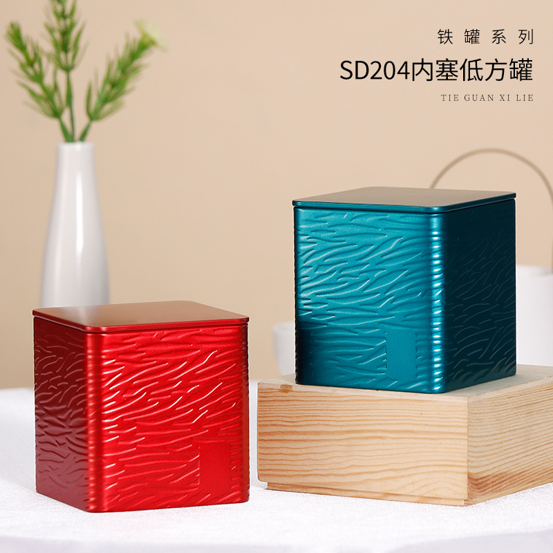 汎用ブリキ茶葉缶鉄箱50g緑茶紅茶茶葉箱空箱角型鉄缶小茶缶卸売り