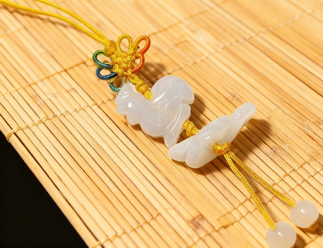 精工東陵玉十二支ペンダント中国結び元宝型緑翡翠工芸品吉祥物アクセサリー